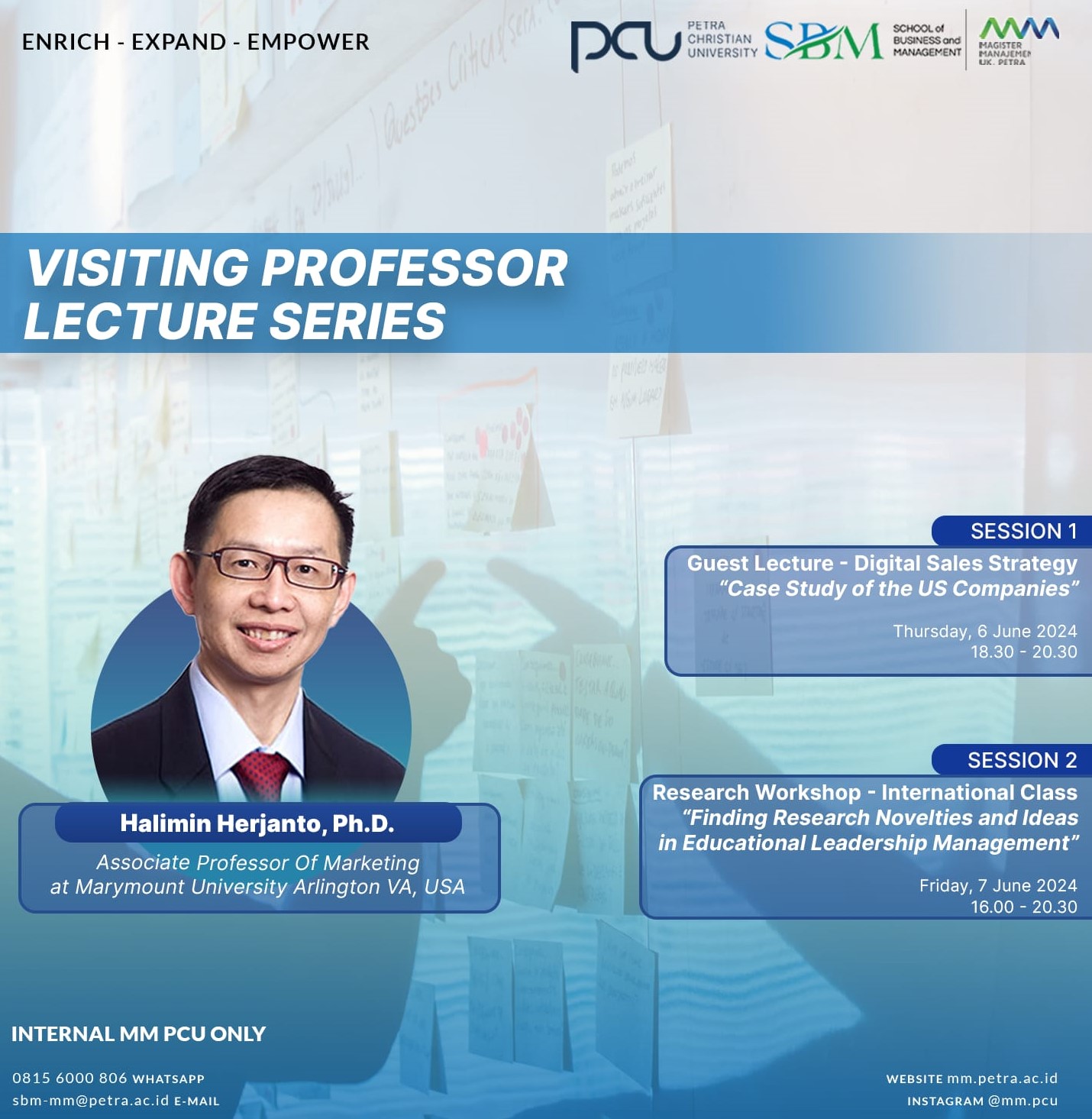 Pada tanggal 6-7 Juni 2024 Program Studi Magister Manajemen UK Petra mengadakan acara kuliah tamu dengan narasumber Halimin Herjanto, Ph.D.