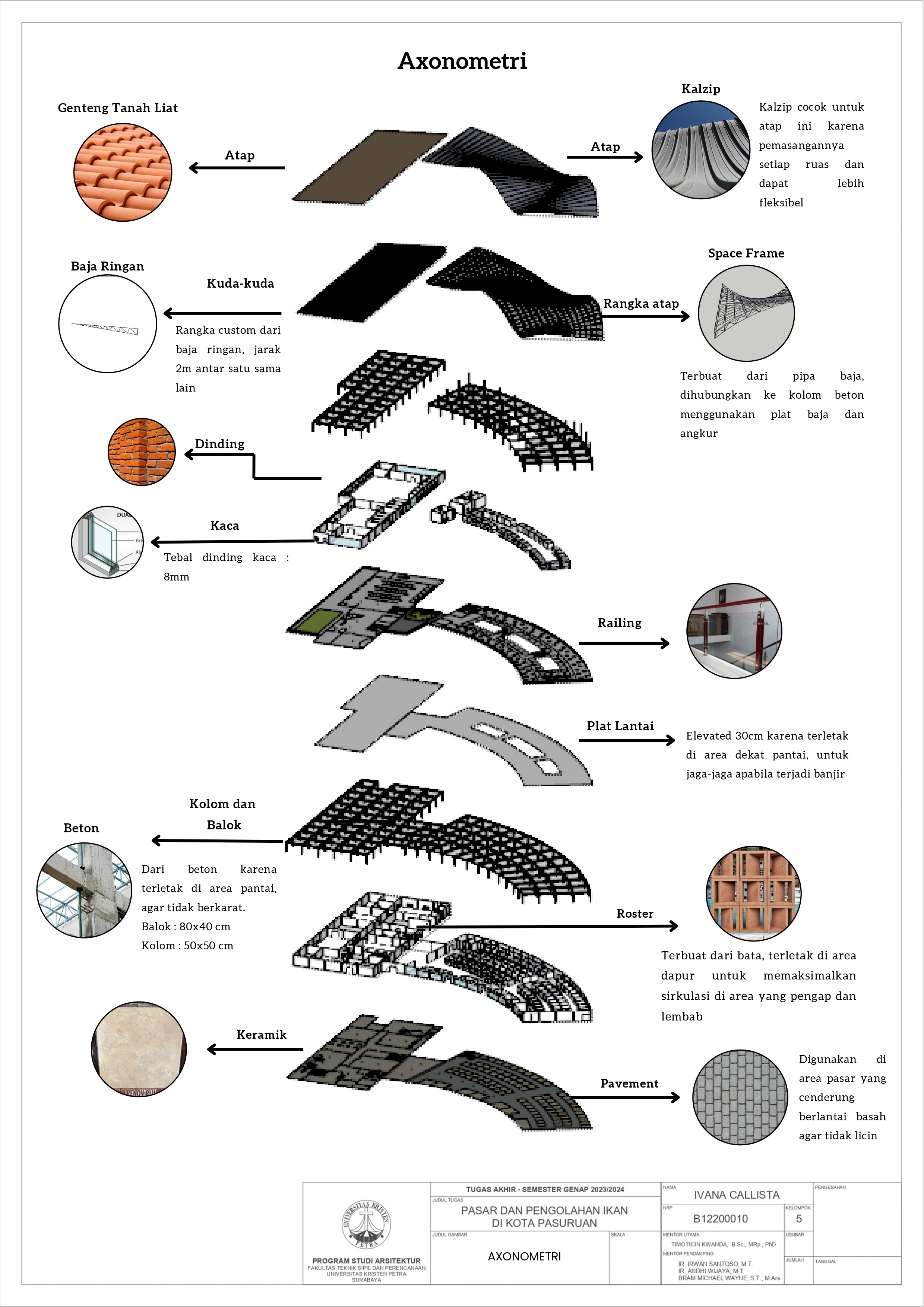 Kota Pasuruan adalah sebuah kota kecil yang terletak di Provinsi Jawa Timur. Karena lokasinya yang berada tepat di tepian laut, Kota Pasuruan cukup terkenal akan potensi dan komoditas laut dan perikanan. Namun, fasilitas eksisting sekarang tidak dapat mendukung tersebut untuk mencapai potensi maksimalnya; dapat dilihat dari pelabuhan perikanan yang kapasitasnya kurang untuk menampung hasil tangkapan rata-rata 7 ton per hari, dermaga dan area tautan perahu yang rusak dan sempit, dan tidak adanya pasar ikan atau di mana para masyarakat dapat membeli ikan. Perencanaan ini ditujukan untuk mengembangkan potensi perikanan kota Pasuruan serta memberikan lebih banyak lowongan pekerjaan untuk masyarakat sekitar. Fasilitas ini akan mempunyai dua fungsi utama, yang pertama adalah sebagai area lelang dan pasar ikan, kedua adalah gudang penyimpanan dan area pengolahan ikan, beserta beberapa fungsi penunjang seperti food court, area perkantoran, serta toko retail. Pendekatan yang diambil untuk menyelesaikan masalah tersebut adalah pendekatan sirkulasi dengan mengambil teori dari buku Francis DK Ching yaitu Pencapaian Sirkulasi, Pola Sirkulasi, dan Konfigurasi Jalur Sirkulasi. Dengan demikian, diharapkan perencanaan ini dapat membantu meningkatkan potensi perikanan di kota Pasuruan dengan mempermudah akses masyarakat menuju ikan segar serta hasil olahan ikan lainnya.