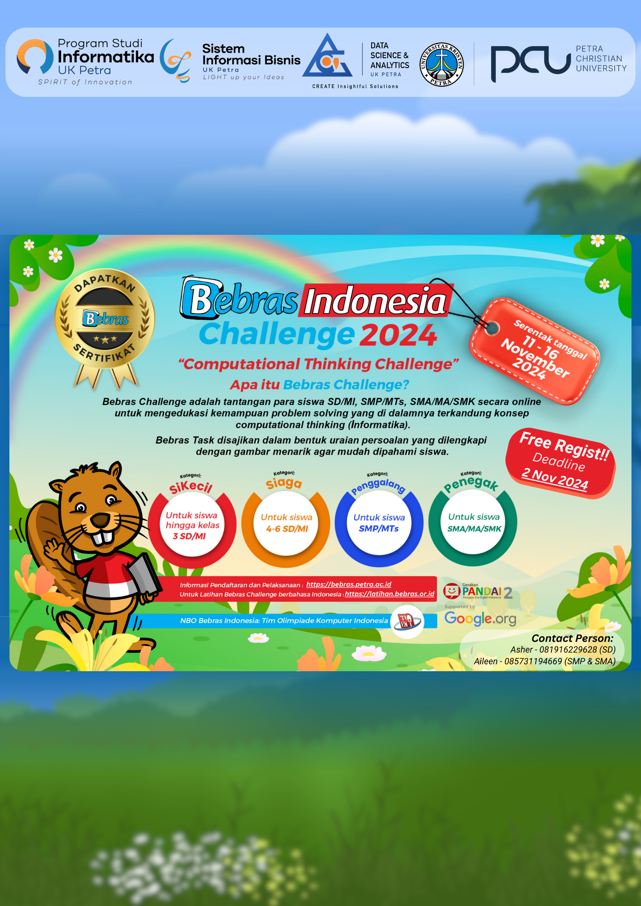 Tantangan Bebras Indonesia adalah ajang kesempatan bagi siswa Indonesia untuk menunjukkan kemampuan Computational Thinking secara sukarela, mandiri, dengan cara yang menyenangkan, penuh kejujuran dan kegembiraan bersama siswa lain di seluruh dunia. Ini adalah kesempatan siswa untuk mempraktekkan akhlak mulia, berpikir kritis dan kreatif serta kebhinekaan global di dunia maya, khususnya di bidang Computational Thinking. Setelah Tantangan Bebras, materi tantangan dapat dijadikan bahan belajar CT. Guru yang membina siswanya untuk berpartisipasi juga akan mengikuti perkembangan dan bertambah pengetahuannya tentang CT.