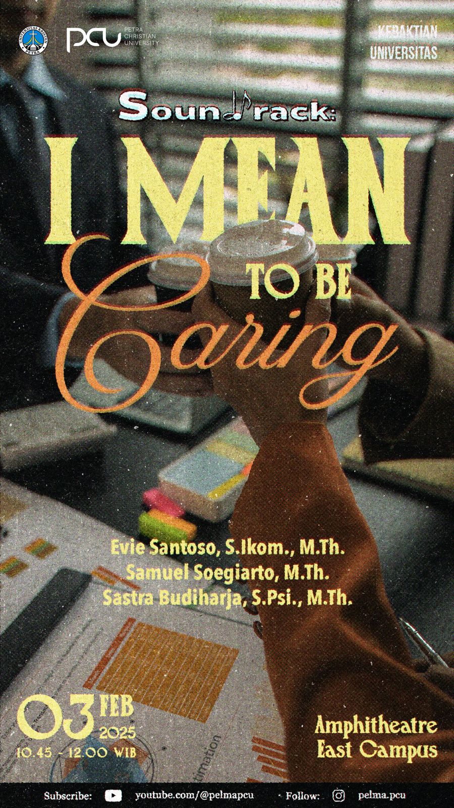 Topik ini menjadi renungan dalam acara Kebaktian universitas: soundtrack i mean to be caring, pada tanggal 03 Februari 2025 bertempat di Amphitheatre gedung Q dengan Pengkhotbah Evie Santoso, M.Th. dan Samuel Soegiarto, M.Th dan Sastra Budiharja, M.Th.