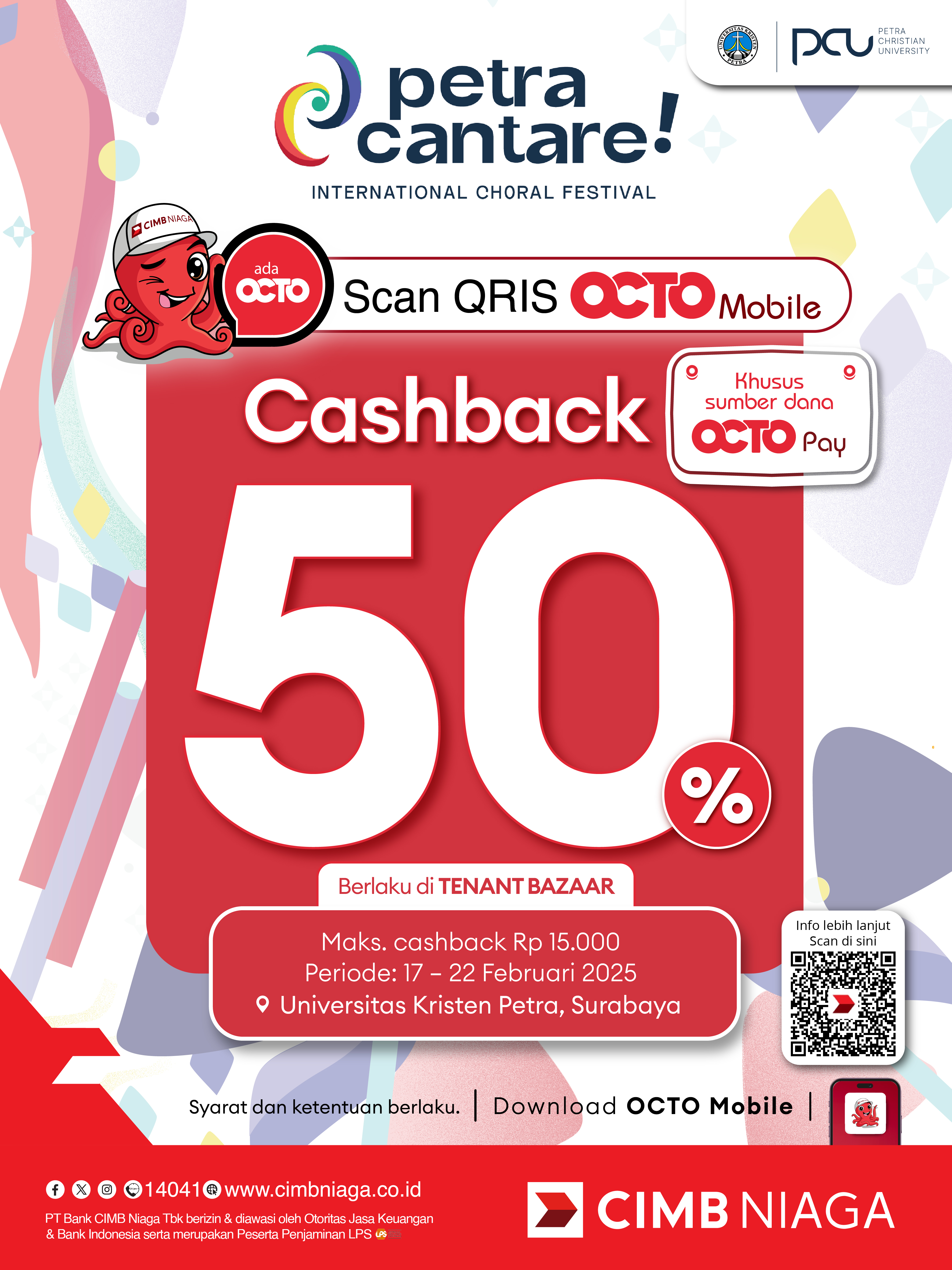 Pada saat pelaksanaan International Choral Festival, juga diselenggarakan bazaar yang. dengan menggunakan QRIS CIMB, bisa mendapatkan cashback 50%. Acara ini dilaksanakan pada 17 - 22 Februari 2025.