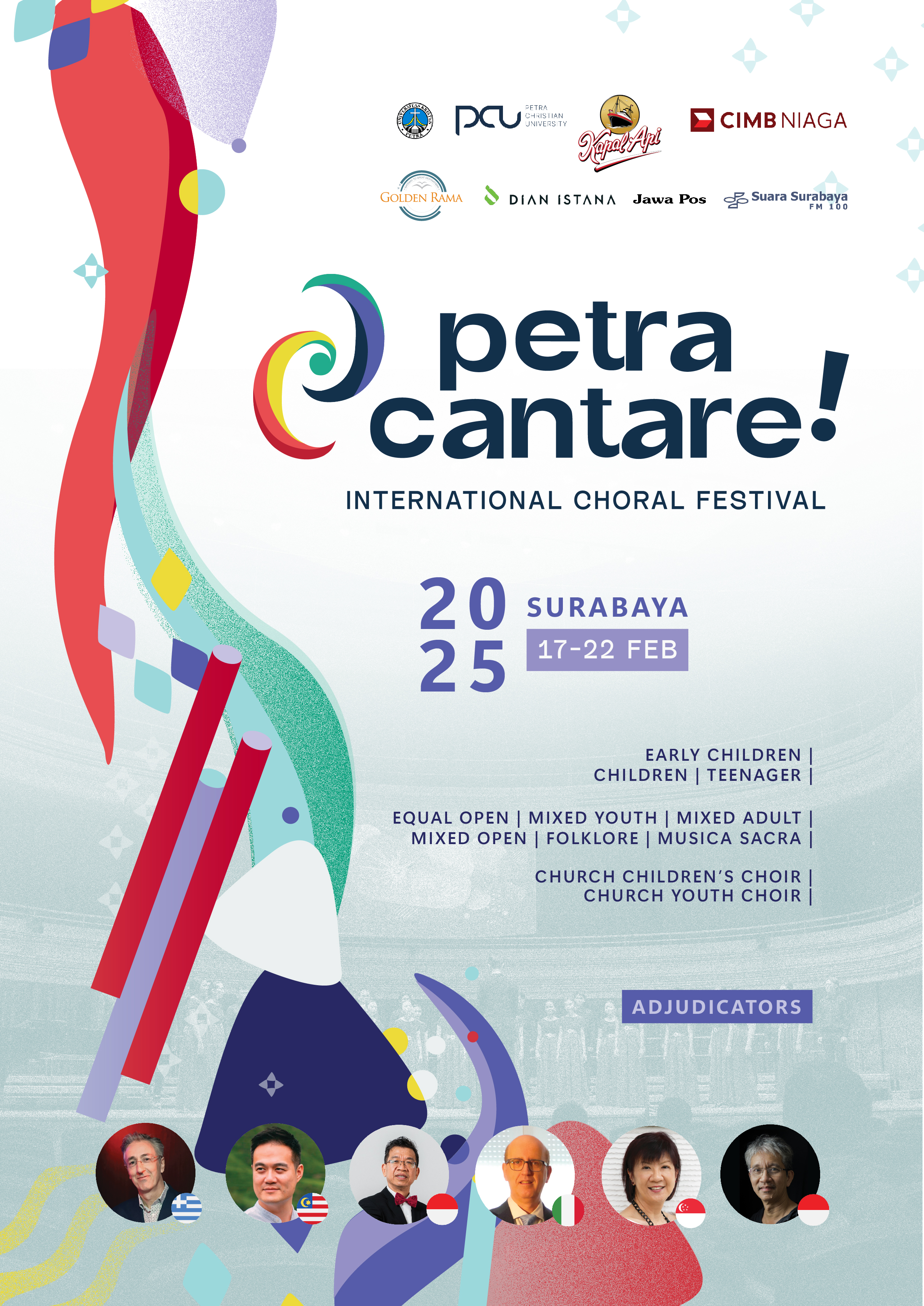 Petra Cantare 2025 International Choral Festival akan diselenggarakan oleh Universitas Kristen Petra pada tanggal 17 - 22 Februari 2025. Di kampus UK Petra Surabaya.