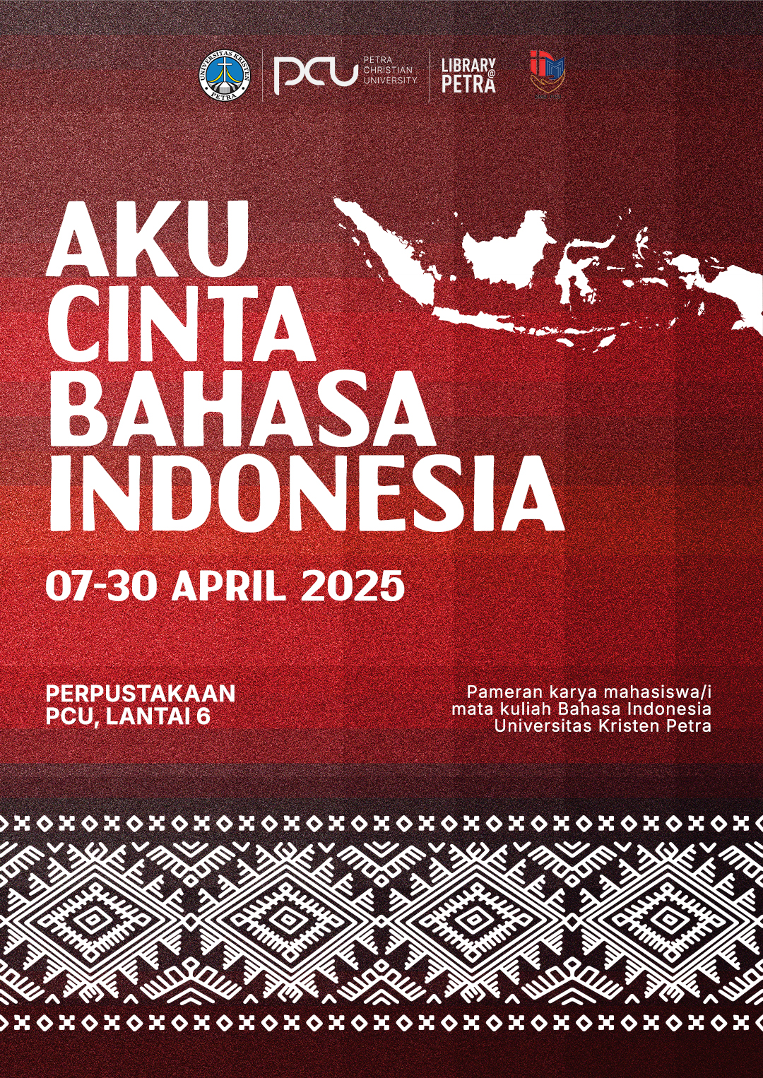 Pameran "Aku Cinta Bahasa Indonesia" menampilkan hasil karya mahasiswa dan mahasiswi Universitas Kristen Petra dari mata kuliah Bahasa Indonesia dalam berbagai macam bentuk dan media. Pameran ini menjadi wadah ekspresi dan apresiasi atas kecintaan terhadap bahasa Indonesia sebagai bagian penting dari identitas, komunikasi, dan budaya. Melalui karya-karya yang ditampilkan, para mahasiswa diajak untuk lebih memahami, menghargai, dan menghidupi bahasa Indonesia dalam kehidupan sehari-hari. Acara pamaeran ini diselenggarakan pada 07-30 April 2025 bertempat di Ruang Pameran Perpustakaan Lantai 6.