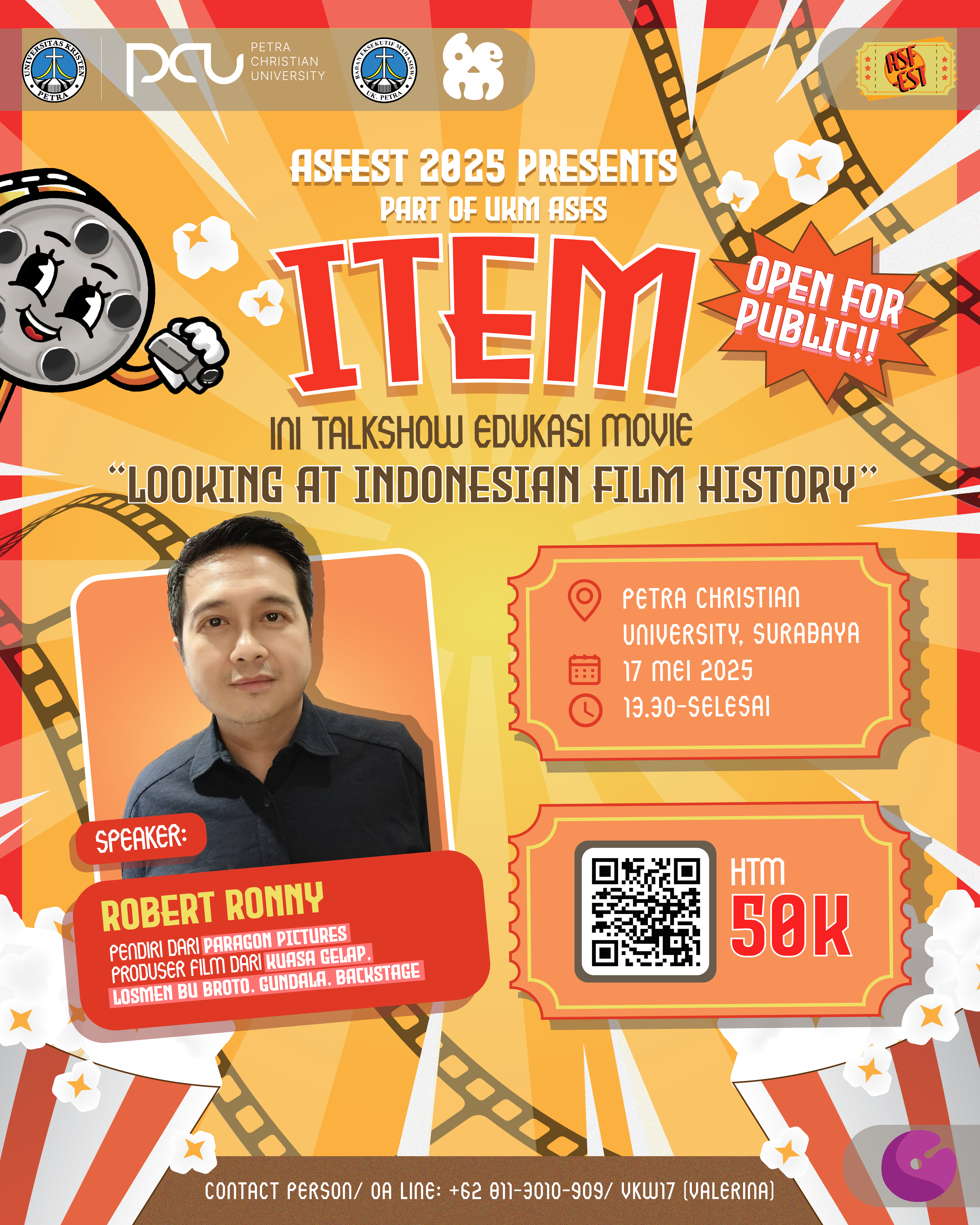 ITEM (Ini Talkshow Edukasi Movie) adalah kegiatan yang diselenggarakan oleh UKM ASFS. Pada ITEM tahun ini, UKM ASFS Mengadakan acara bersamaan dengan diselenggarakannya ASFS Film Festival. Dengan dihadirkannya ITEM ini, diharapkan peserta dapat mendapatkan wawasan tentang dunia perfilman, terutama di Indonesia. Acara ITEM diselenggarakan pada 17 Mei 2025 jam 13.30 dengan menghadirkan narasumber Robert Ronny pendiri dari Paragon Pictures.