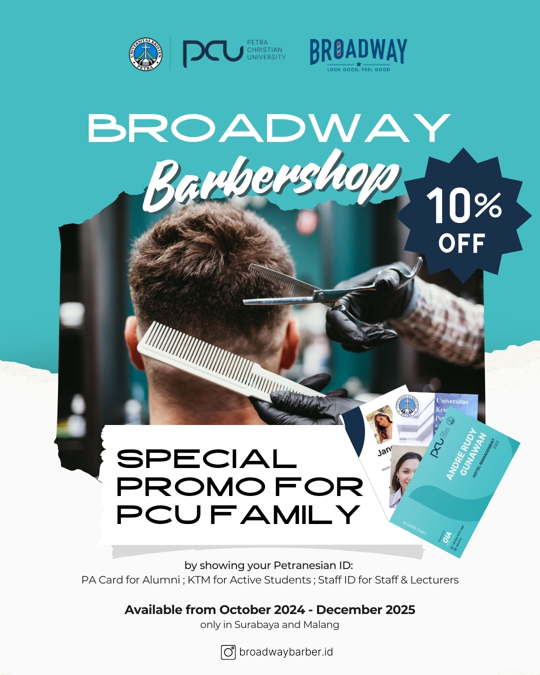 Cukup tunjukkan identitas sebagai PCU Family, bisa dapetin diskon di Broadway Barbershop, loh