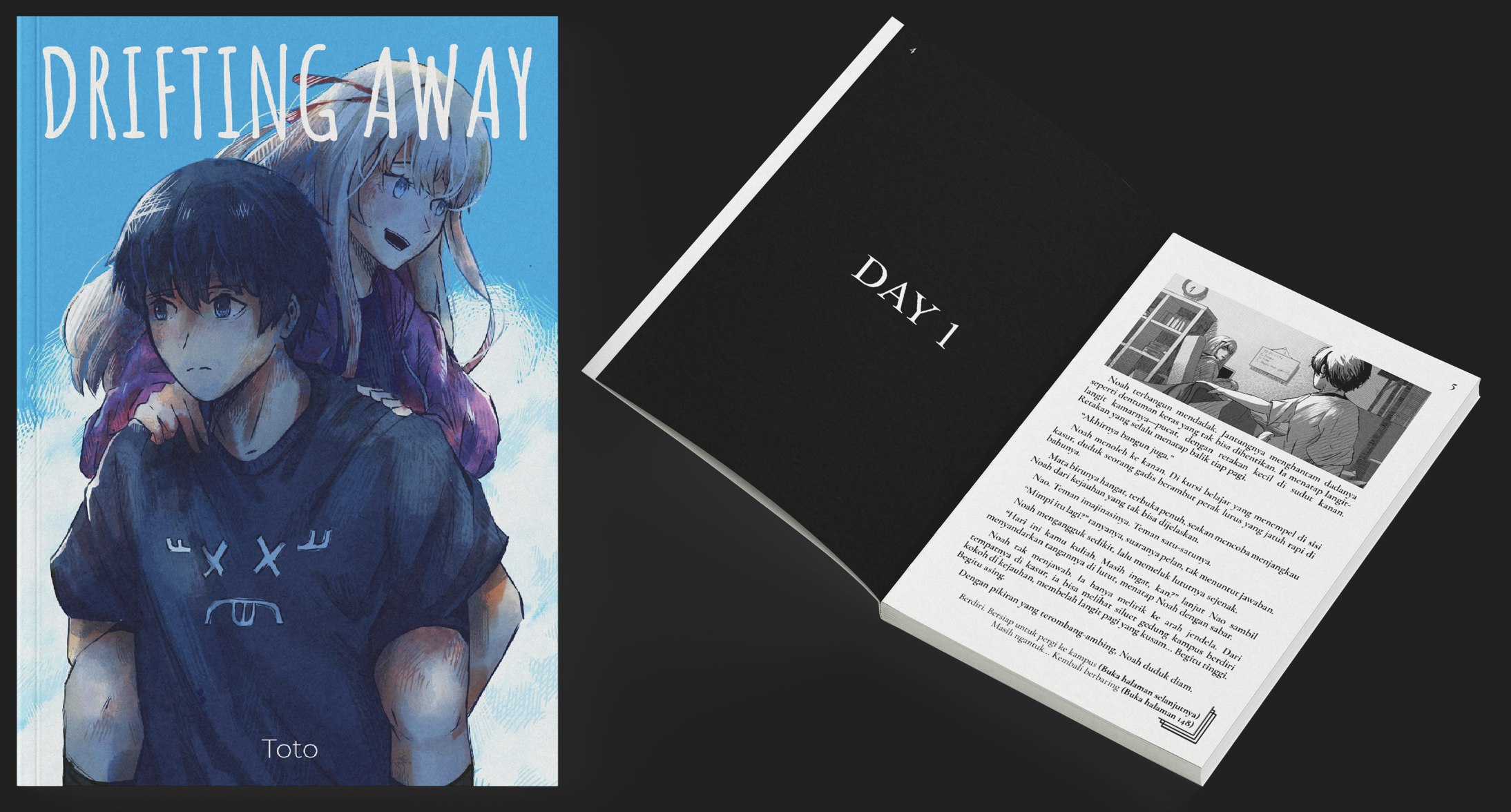 Meningkatnya kesadaran akan pentingnya kesehatan mental belum sepenuhnya diimbangi dengan pemahaman mengenai gangguan seperti depresi psikotik. Kurangnya edukasi serta tingginya stigma sosial menyebabkan penderita enggan mencari bantuan profesional. Kondisi ini sangat relevan dengan kelompok usia dewasa awal (19-25 tahun), yang berada pada fase transisi kritis dan rentan terhadap tekanan psikologis. Untuk menjawab kebutuhan akan media edukasi yang efektif, menarik, dan sesuai dengan karakteristik kelompok usia tersebut, di rancanglah buku Drifting Away, sebuah buku cerita interaktif yang menempatkan pembaca dalam sudut pandang penderita depresi psikotik. Buku ini menggabungkan narasi mendalam, ilustrasi, serta elemen interaktif untuk menciptakan pengalaman membaca yang reflektif. Selain berfungsi sebagai sarana edukasi, buku ini juga berpotensi sebagai media hiburan berbasis seni yang mendukung pemahaman emosional serta mengurangi stigma terhadap kesehatan mental. Pemilihan format fisik didasarkan pada kemampuannya dalam menciptakan ikatan emosional dan pengalaman sensorik yang kuat, menjadikannya media edukatif yang efektif bagi dewasa awal dalam memahami isu depresi psikotik secara personal dan empatik.
