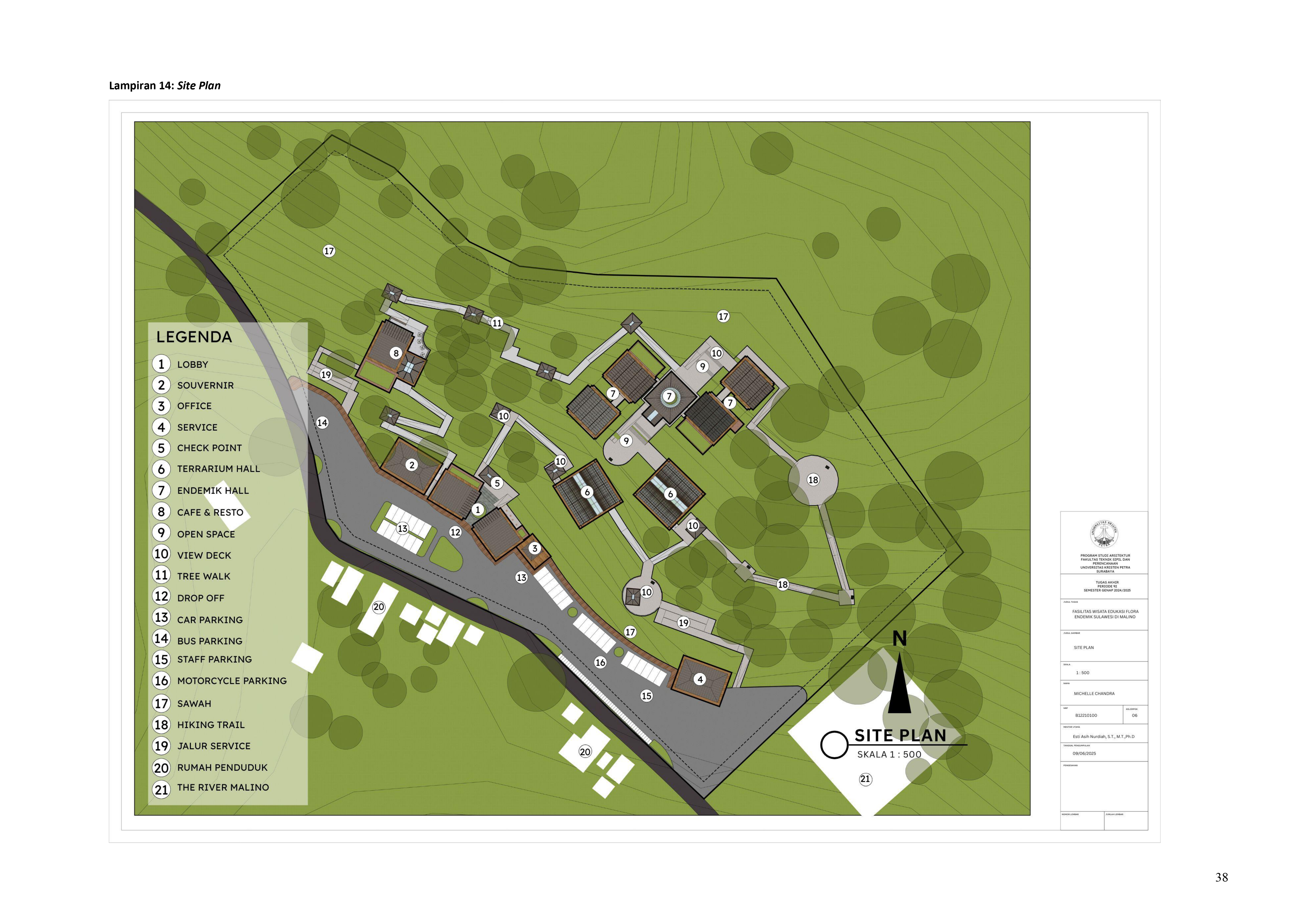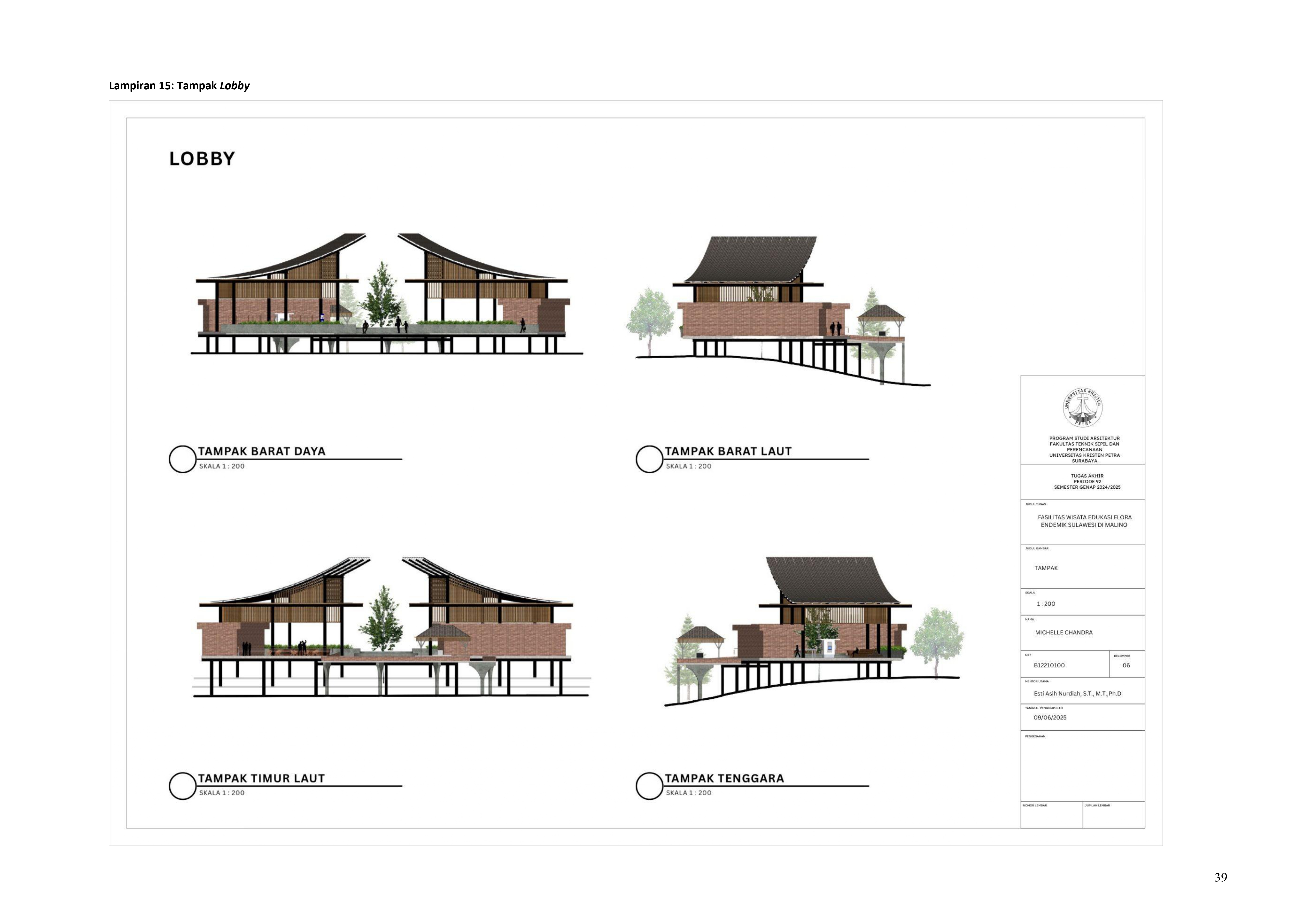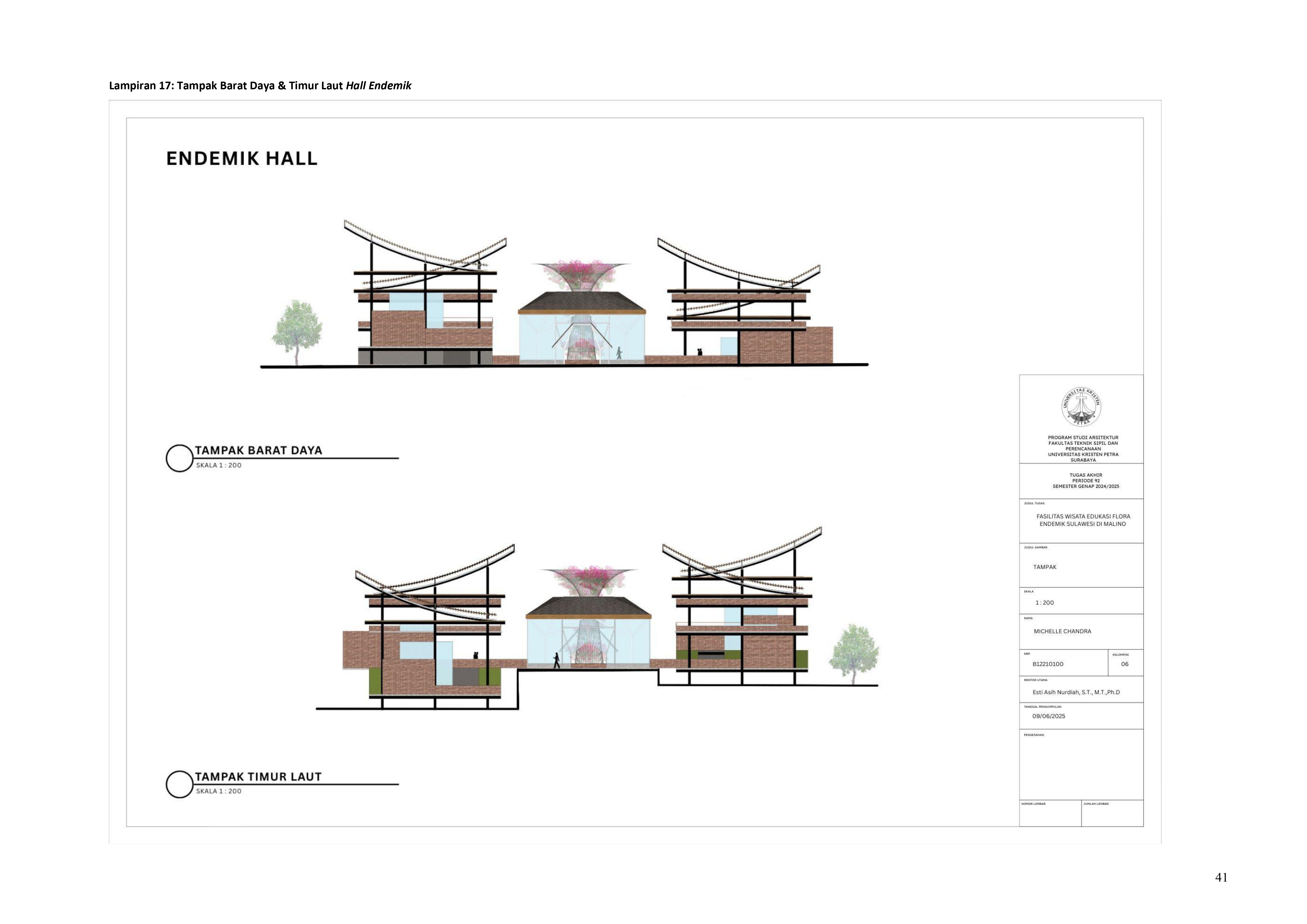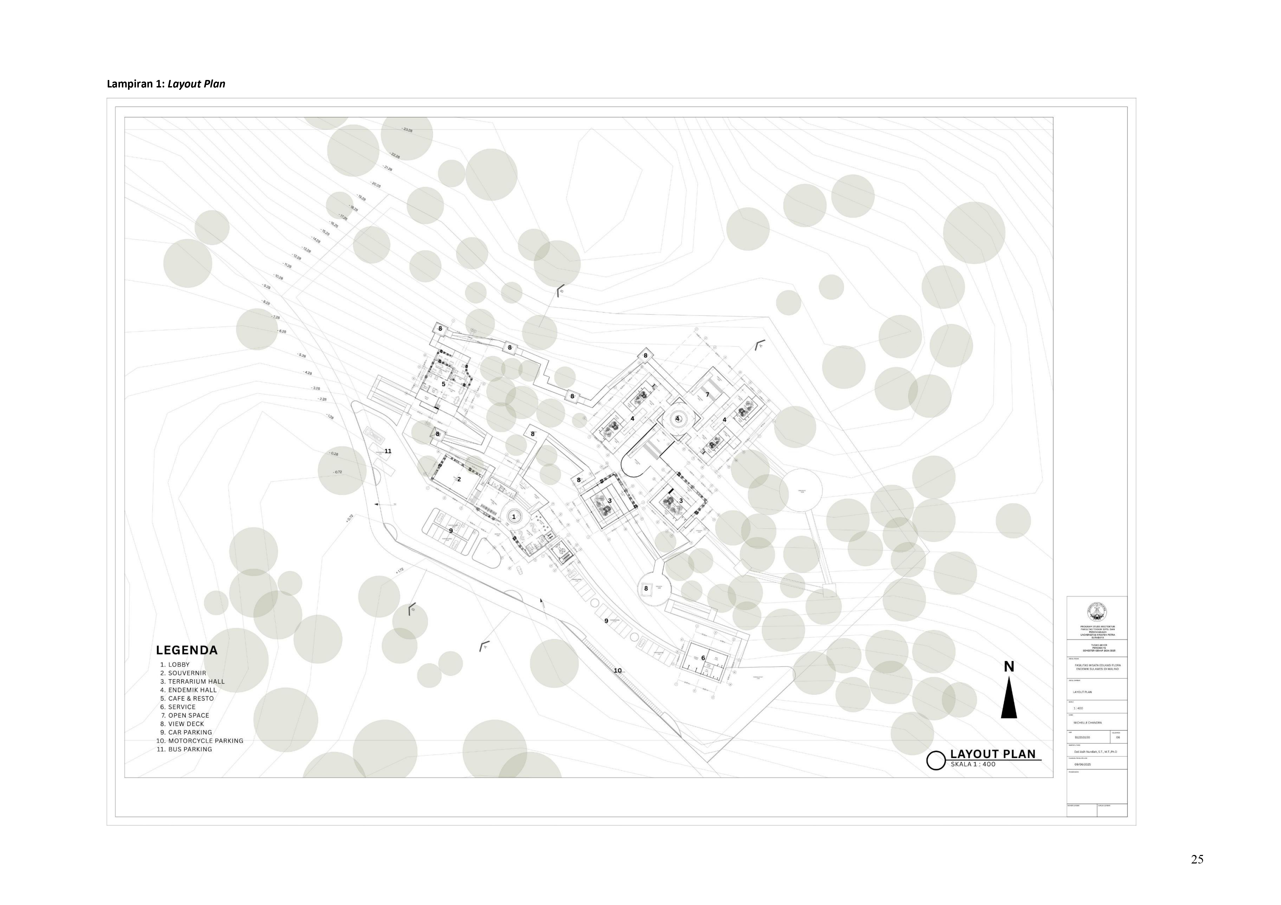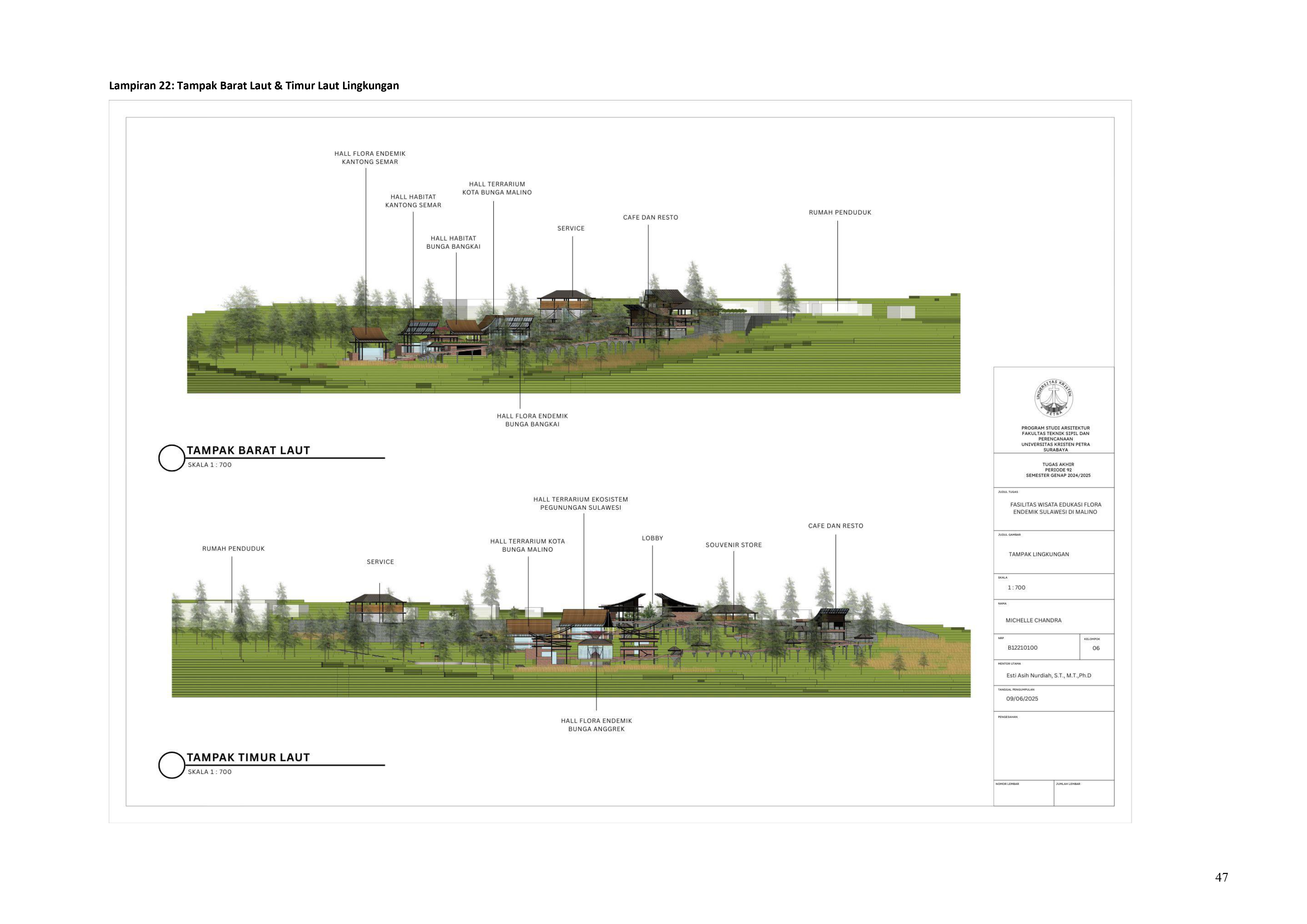 Perkembangan fasilitas edukasi saat ini menuntut perancangan ruang yang tidak hanya berfungsi sebagai media pembelajaran, tetapi juga mampu menjadi penghubung langsung antara manusia dan alam. Perancangan Fasilitas Wisata Edukasi Flora Endemik Sulawesi di Malino dilatarbelakangi oleh menurunnya kesadaran masyarakat terhadap pentingnya pelestarian flora lokal, yang semakin terancam oleh aktivitas pariwisata yang tidak terkontrol dan degradasi lingkungan. Untuk menjawab tantangan ini, pendekatan constructed ecosystem diterapkan sebagai strategi utama dalam perancangan. Pendekatan ini bertujuan untuk menciptakan lingkungan buatan yang meniru dan merepresentasikan sistem kerja ekosistem alami, sehingga mampu menghadirkan pengalaman ekologis secara nyata dalam konteks ruang arsitektur. Melalui metode studi literatur, observasi lapangan, dan analisis tapak, desain dikembangkan ke dalam bentuk terarium besar, ruang interpretatif, jalur edukatif, serta zona konservasi semi-terbuka yang saling terhubung secara fungsional dan ekologis. Setiap elemen ruang dirancang tidak hanya untuk menampilkan keanekaragaman flora endemik Sulawesi, tetapi juga menciptakan sistem mikroklimat yang mendukung pertumbuhan tanaman dan kenyamanan pengunjung. Ruang-ruang ini saling terhubung dan memberi pengalaman langsung dengan ekosistem buatan, untuk menumbuhkan kesadaran akan pentingnya lingkungan. Proyek ini bertujuan menjadi contoh arsitektur edukatif yang peduli lingkungan, melibatkan masyarakat, dan berdampak langsung pada konservasi.