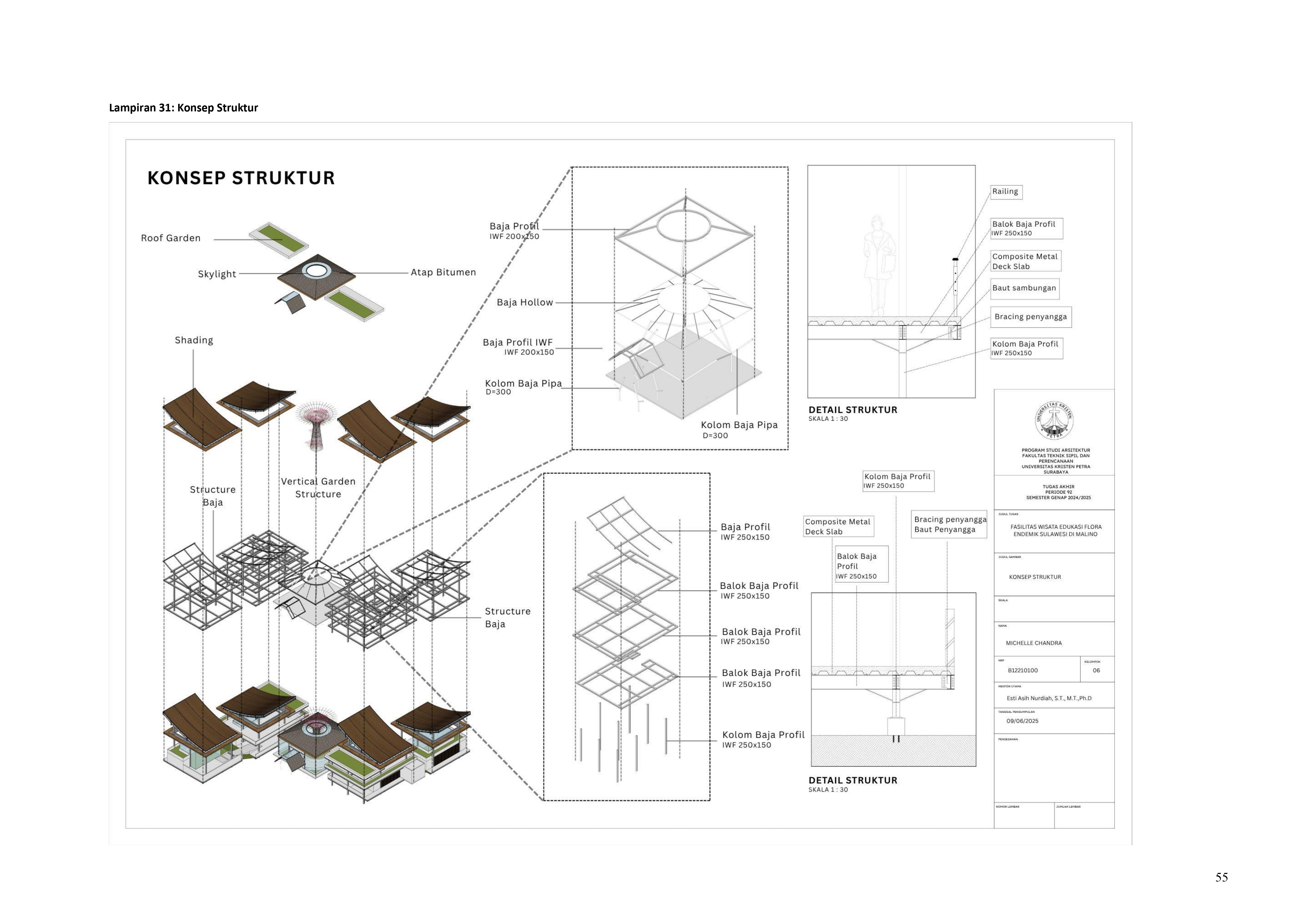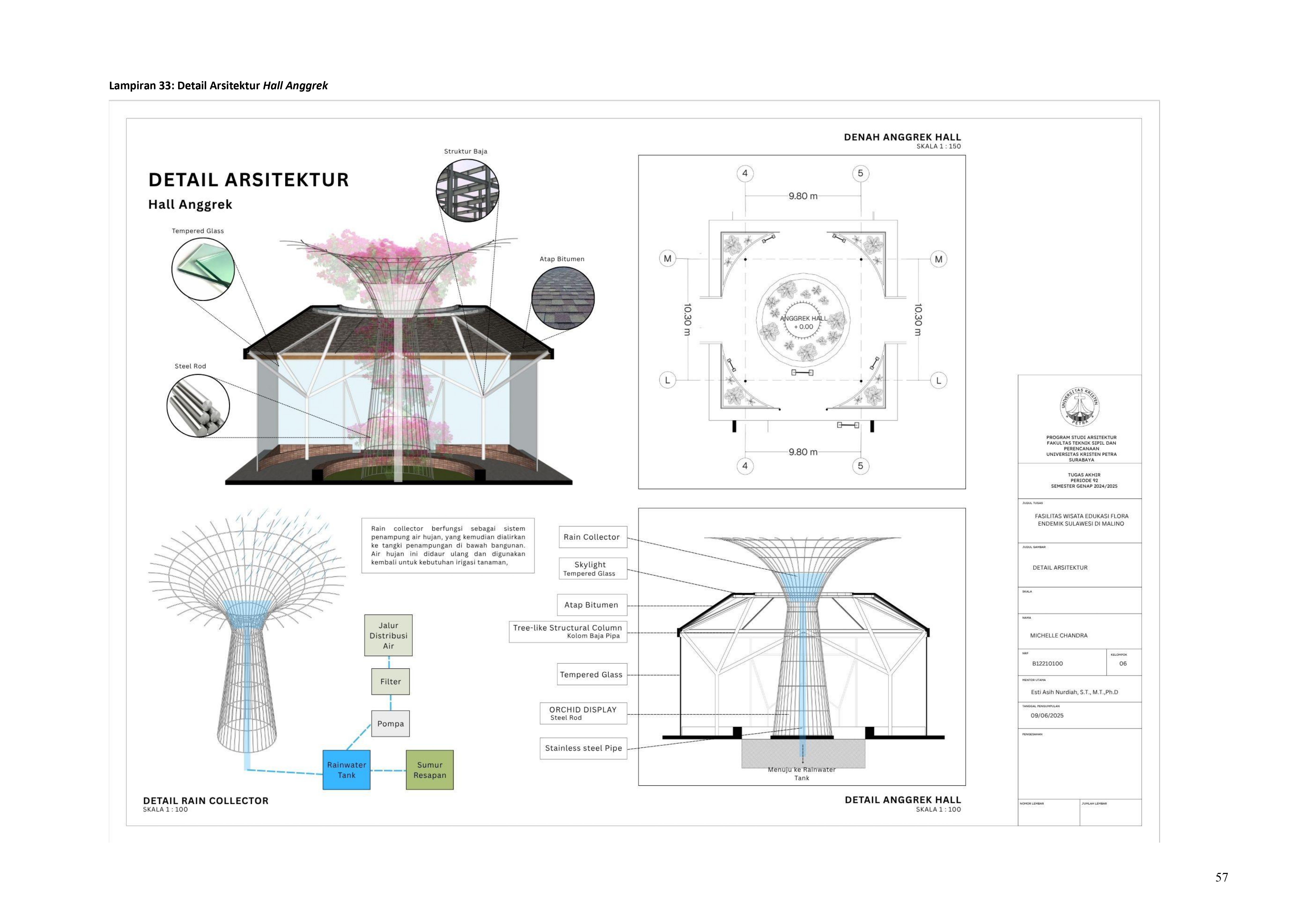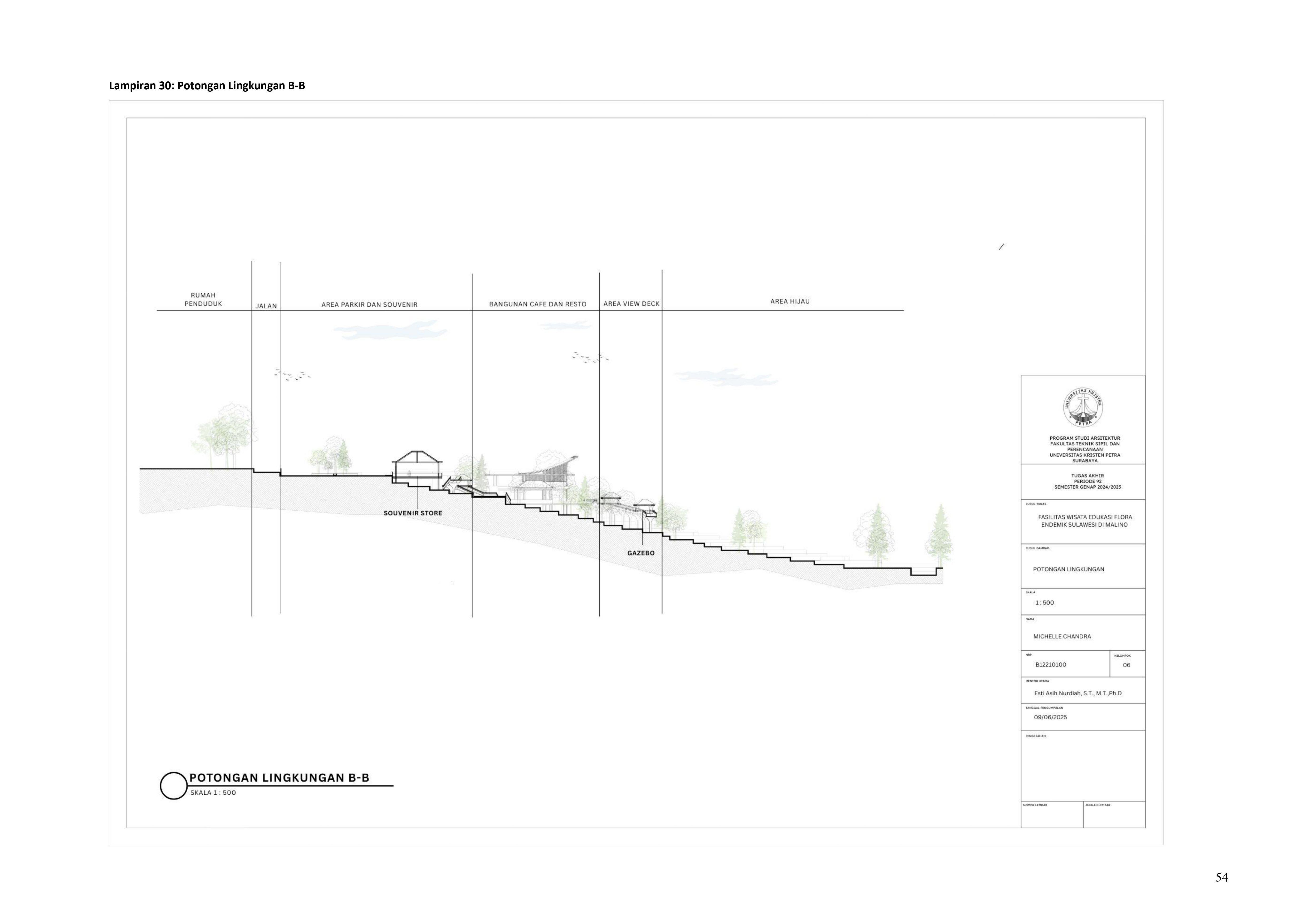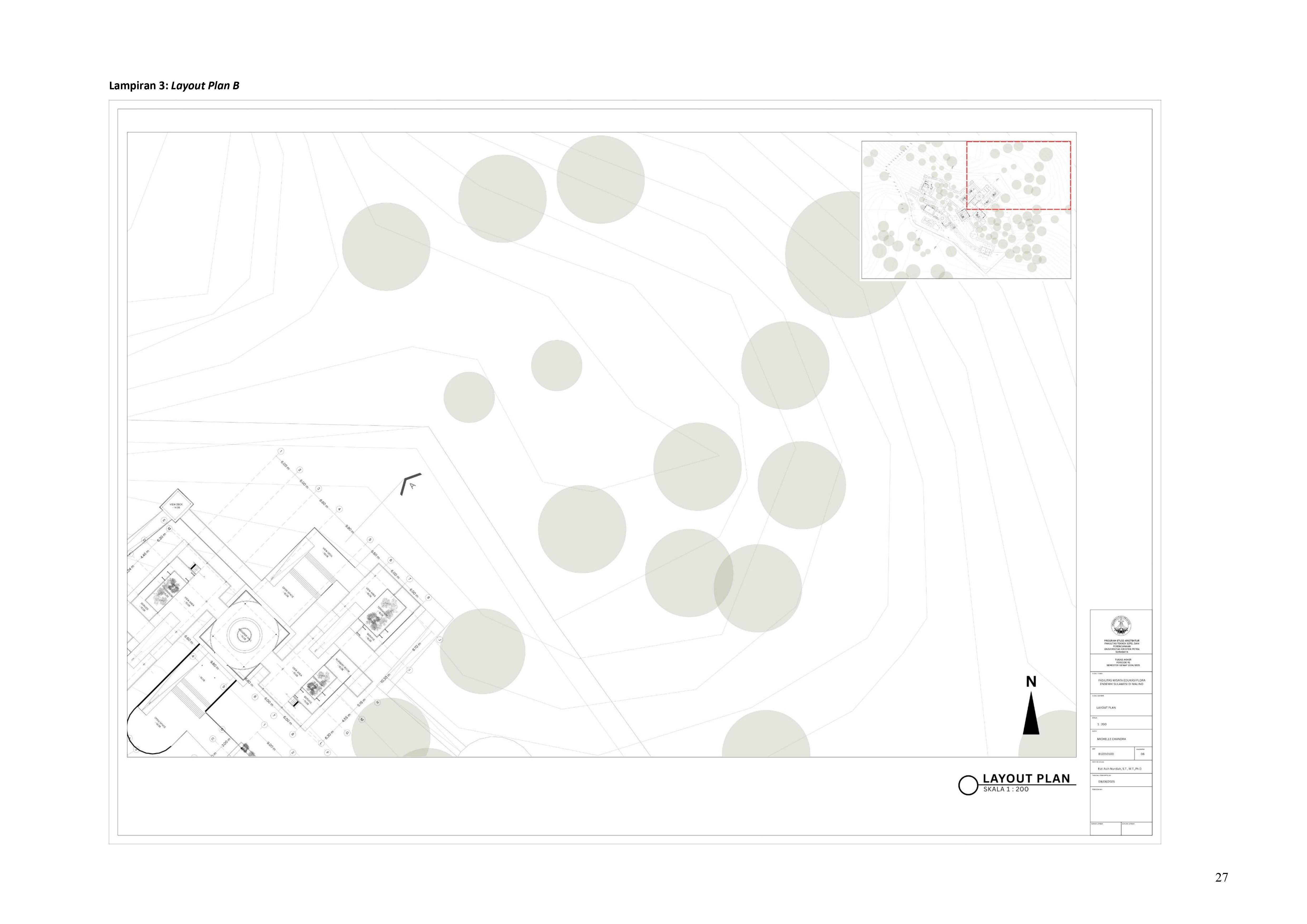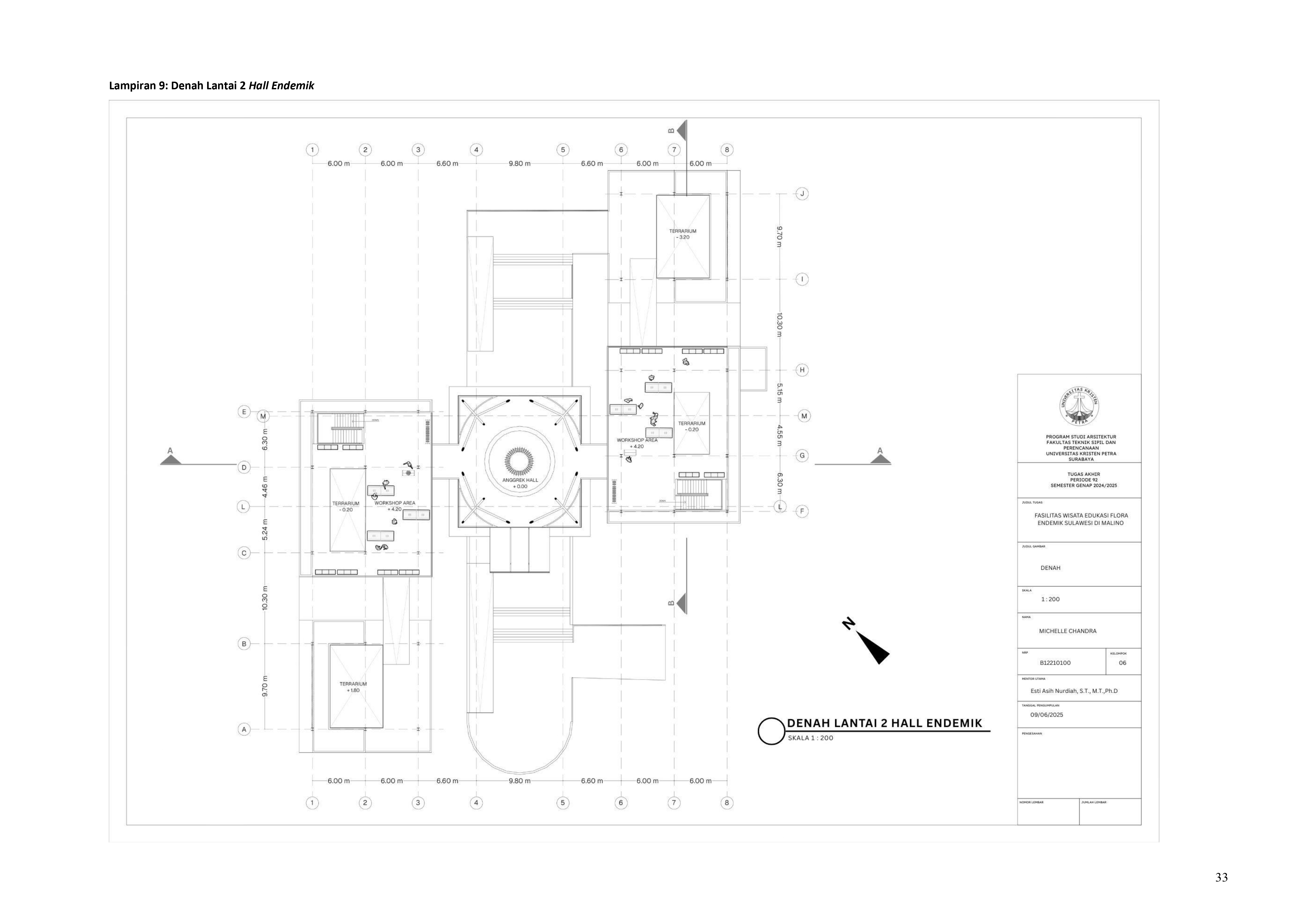 Perkembangan fasilitas edukasi saat ini menuntut perancangan ruang yang tidak hanya berfungsi sebagai media pembelajaran, tetapi juga mampu menjadi penghubung langsung antara manusia dan alam. Perancangan Fasilitas Wisata Edukasi Flora Endemik Sulawesi di Malino dilatarbelakangi oleh menurunnya kesadaran masyarakat terhadap pentingnya pelestarian flora lokal, yang semakin terancam oleh aktivitas pariwisata yang tidak terkontrol dan degradasi lingkungan. Untuk menjawab tantangan ini, pendekatan constructed ecosystem diterapkan sebagai strategi utama dalam perancangan. Pendekatan ini bertujuan untuk menciptakan lingkungan buatan yang meniru dan merepresentasikan sistem kerja ekosistem alami, sehingga mampu menghadirkan pengalaman ekologis secara nyata dalam konteks ruang arsitektur. Melalui metode studi literatur, observasi lapangan, dan analisis tapak, desain dikembangkan ke dalam bentuk terarium besar, ruang interpretatif, jalur edukatif, serta zona konservasi semi-terbuka yang saling terhubung secara fungsional dan ekologis. Setiap elemen ruang dirancang tidak hanya untuk menampilkan keanekaragaman flora endemik Sulawesi, tetapi juga menciptakan sistem mikroklimat yang mendukung pertumbuhan tanaman dan kenyamanan pengunjung. Ruang-ruang ini saling terhubung dan memberi pengalaman langsung dengan ekosistem buatan, untuk menumbuhkan kesadaran akan pentingnya lingkungan. Proyek ini bertujuan menjadi contoh arsitektur edukatif yang peduli lingkungan, melibatkan masyarakat, dan berdampak langsung pada konservasi.