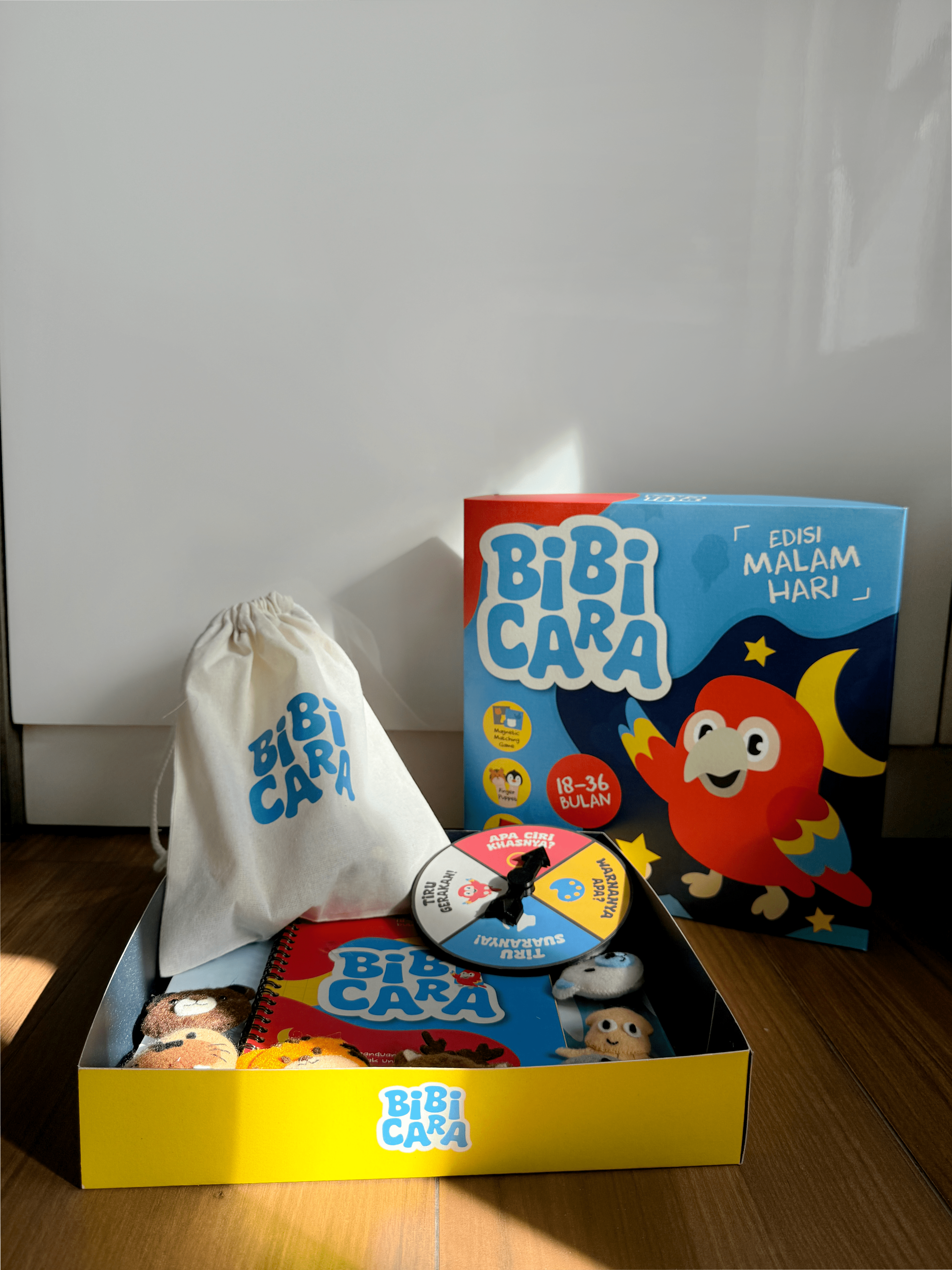 Keterlambatan bicara atau biasa disebut juga dengan speech delay merupakan salah satu gangguan yang umum terjadi pada anak usia dini. Berdasarkan Lestari (2024), Fakultas Kesehatan Masyarakat dan Keperawatan (FKKKMK) Universitas Gadjah Mada Yogyakarta, menyatakan bahwa 5 hingga 10 persen anak Indonesia mengalami keterlambatan kemampuan berbicara atau speech delay. Hal ini menunjukkan bahwa terdapat banyak kasus speech delay pada anak Indonesia. Selain itu, hal ini dapat terjadi juga ada pengaruh dari orang tua yang belum bisa menciptakan lingkungan stimulasi yang efektif di rumah. Penelitian ini bertujuan untuk merancang sebuah media edukasi wicara yang dapat membantu orang tua dalam melatih bicara anak sebagai bentuk pencegahan terjadinya speech delay pada anak usia 18-36 bulan. Metode perancangan yang dilakukan adalah melalui pengumpulan data primer, yaitu hasil observasi dan juga wawancara. Sedangkan data sekunder didapat dari penelitian dan jurnal yang sudah ada. Hasil dari perancangan ini adalah sebuah media edukasi wicara bernama “Bibicara” yang menyediakan aktivitas stimulasi di malam hari untuk anak bersama dengan orang tua. Bibicara terdiri dari 3 hal, yaitu pertama adalah permainan magnetic matching game untuk mengisi waktu playtime anak. Kedua, adalah finger puppet yang bisa digunakan untuk bercerita dengan anak pada saat bed time. Ketiga, adalah buku panduan dan jurnal bahasa untuk orang tua agar dapat membantu untuk memantau perkembangan bahasa anak. Uji coba pada tiga keluarga dan didapatkan hasil bahwa media Bibicara ini dapat membantu orang tua untuk menstimulasi bahasa anak. Bibicara dapat membantu agar orang tua dapat berbicara dan menstimulasi anak dengan cara mengajak role play, melakukan roulette aksi yang ada, dan lain-lain. Namun, apabila dilakukan uji coba yang lebih lama maka akan didapatkan hasil yang lebih sesuai dan terukur efektifitasnya.