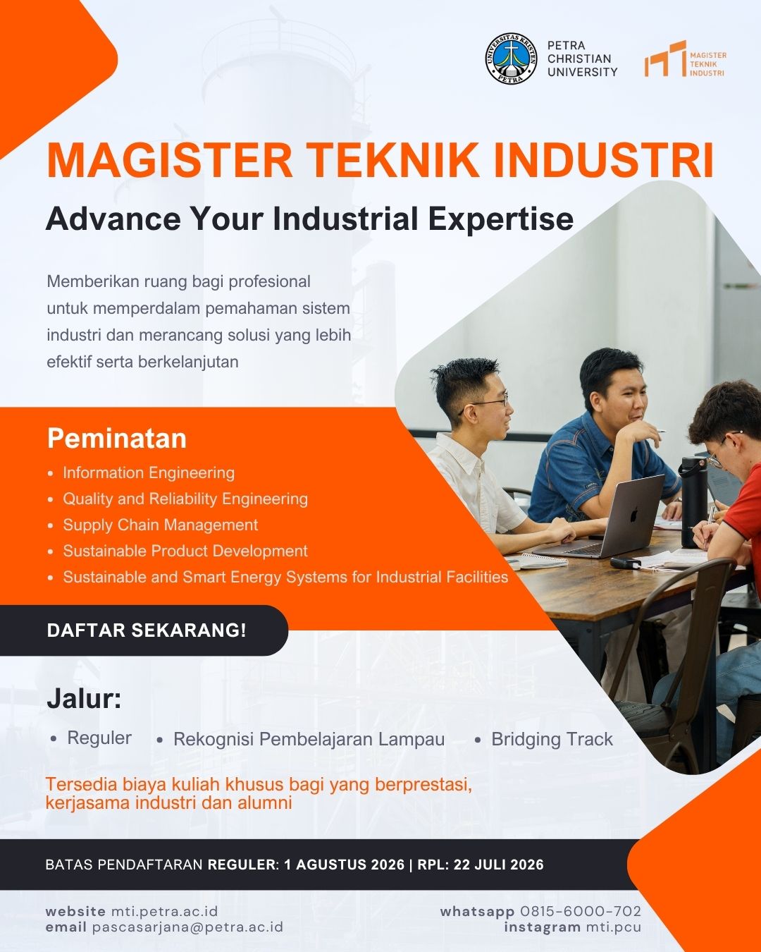 #MagisterTeknikIndustri #S2TeknikIndustri #UKPetra #PMB2026 #IndustrialEngineering #MTIUKP #GraduateProgram