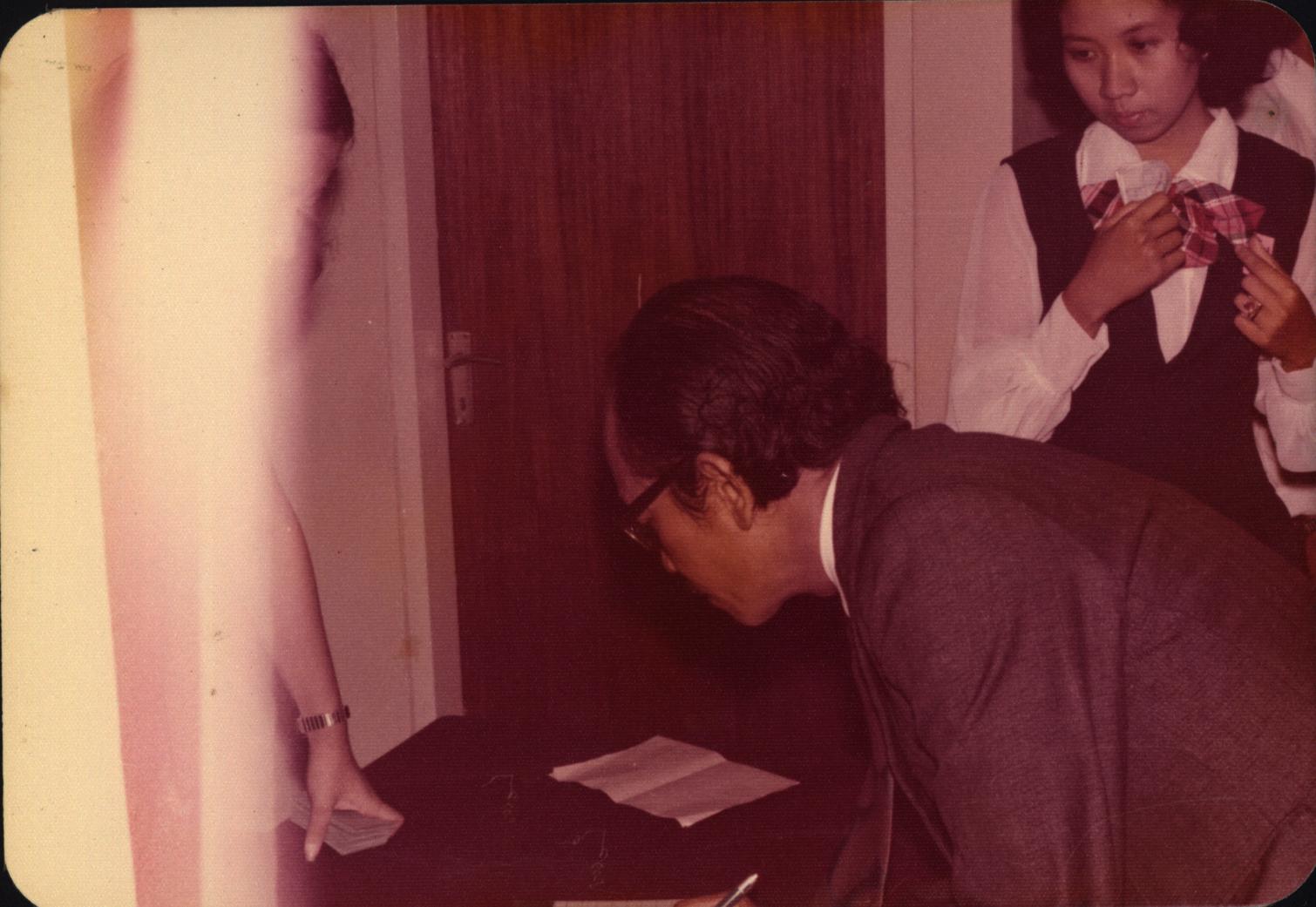 Dokumentasi wisuda sarjana dan sarjana muda pada dies natalis XIV Universitas Kristen Petra tanggal 25 Oktober 1975.