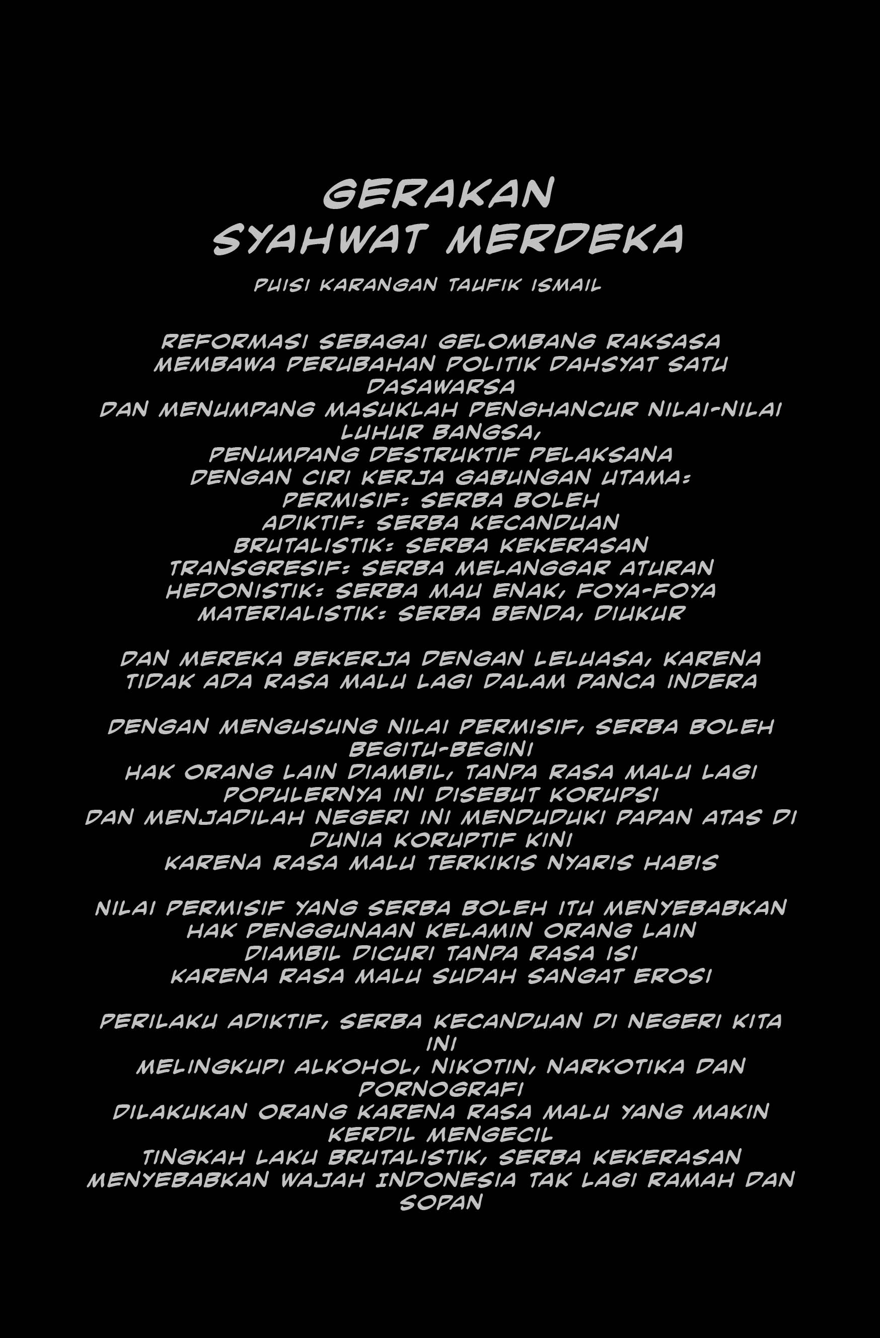 Ismail yang berjudul Gerakan Syahwat Merdeka. Terdapat empat cerita berbeda di