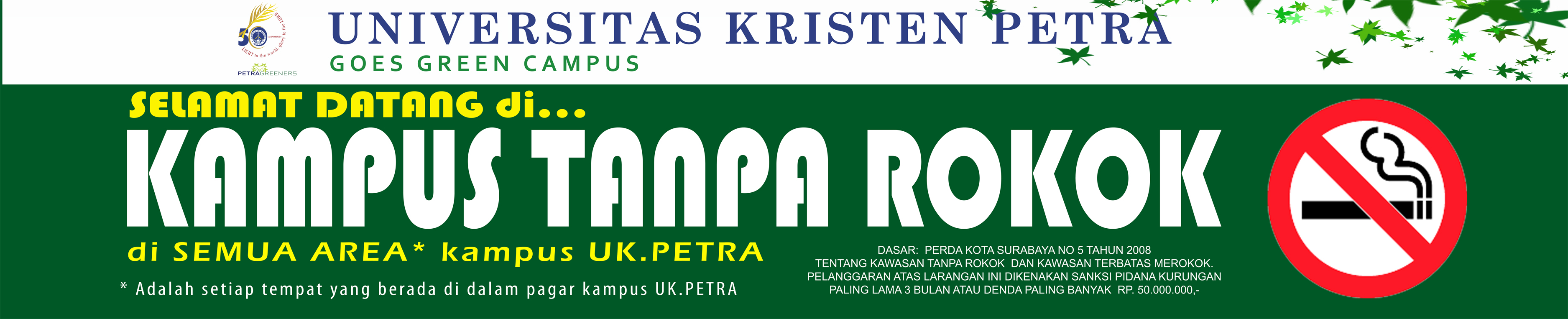 Universitas Kristen Petra Goes Green Campus, salah satunya dengan menerapkan kampus tanpa rokok di semua area kampus UK Petra. Area kampus adalah setiap tempat yang berada di dalam pagar kampus UK Petra.