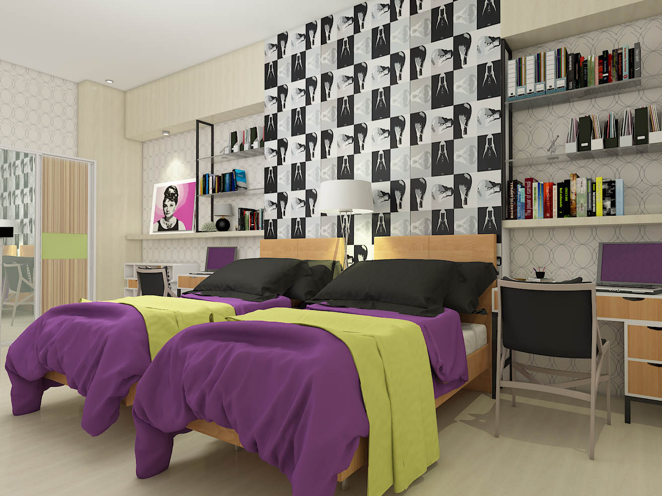 sebagai hiburan dalam menjalani aktivitas sehari-hari. Seni sebagai hiburan meliputi seni musik, seni tari, seni rupa, seni drama, dan lain-lain. Dengan banyaknya masyarakat yang menikmati seni hiburan tersebut, maka bidang seni hiburan diapresiasikan dengan cukup baik di Indonesia. Maka dari itu muncul ide untuk merancang sekolah dengan berbasis pendidikan seni di Surabaya. Perancangan Sekolah Tinggi Seni ini nantinya akan memfasilitasi para pelajar dengan fasilitas tempat tinggal bagi para pelajarnya. Keberadaan fasilitas dormitory yang berada dalam satu area dengan area sekolah diharapkan dapat memberi kemudahan para pelajarnya selama menempuh studi. Perancangan Interior Sekolah Tinggi Seni akan menerapkan konsep “more is more” dengan gaya modern retro, menyesuaikan dengan target penggunanya yang merupakan pelajar usia 18-25 tahun, di mana pada usia muda tersebut lebih tertarik pada sesuatu yang mencolok dan menarik perhatian. Interior yang menerapkan warna-warna cerah dan bentukan geometris stilasi serta penerapan patra diharapkan dapat merangsang kreatifitas para pelajarnya.