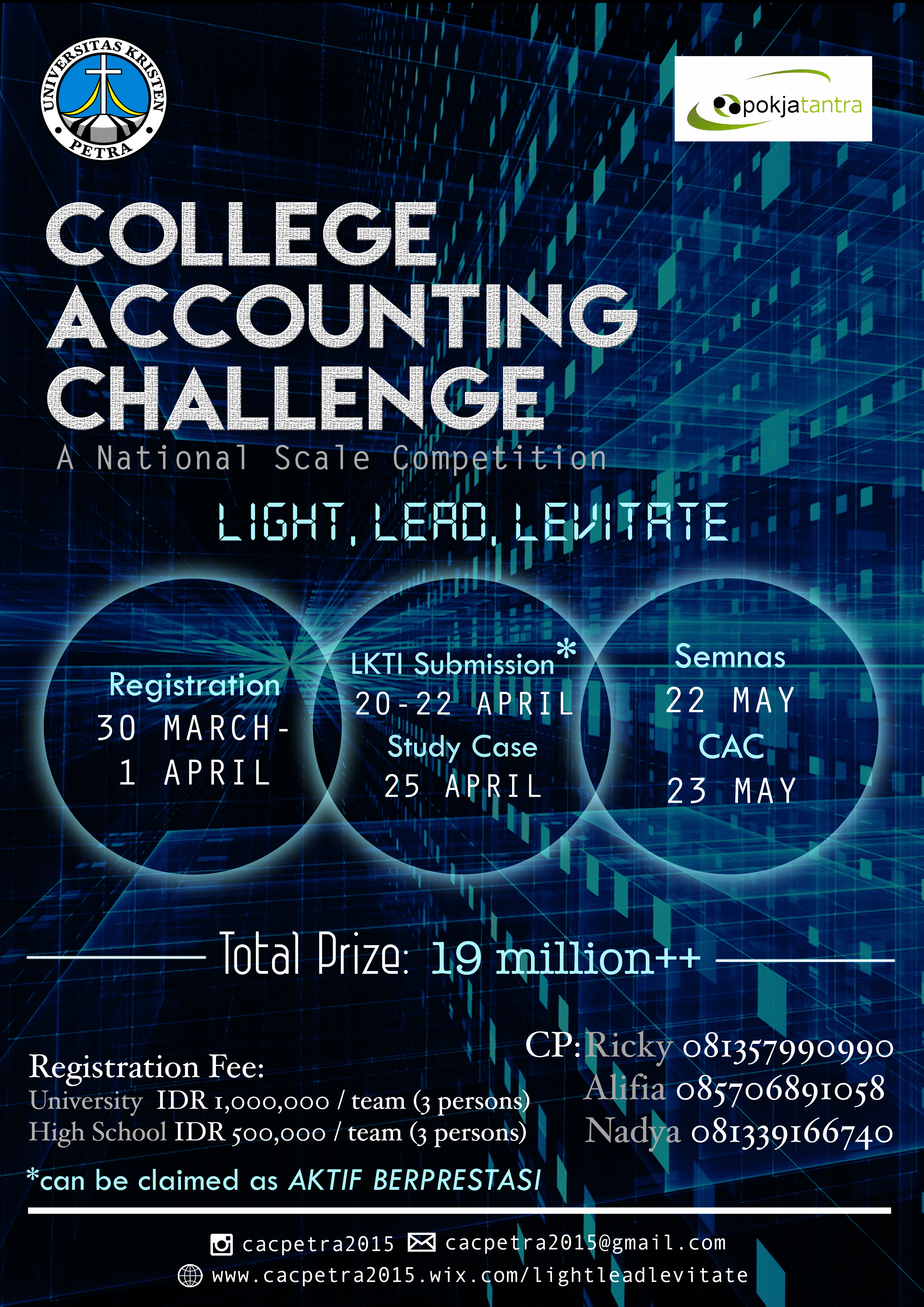 College Accounting Challenge adalah kegiatan kompetisi bertaraf nasional. Kegiatan tersebut diselenggarakan oleh Pokjatantra UK Petra. Tidak hanya kompetisi akutansi, kegiatan CAC juga mengadakan LKTI, seminar nasional, studi kasus, dll. Bagi mahasiswa/I atau siswa/I SMA yang berminat dapat melakukan pendaftaran pada 30 Maret – 1 April 2015, dengan biaya sebesar Rp 1.000.000 bagi mahasiswa/I dan Rp 500.000 bagi siswa/i SMA.