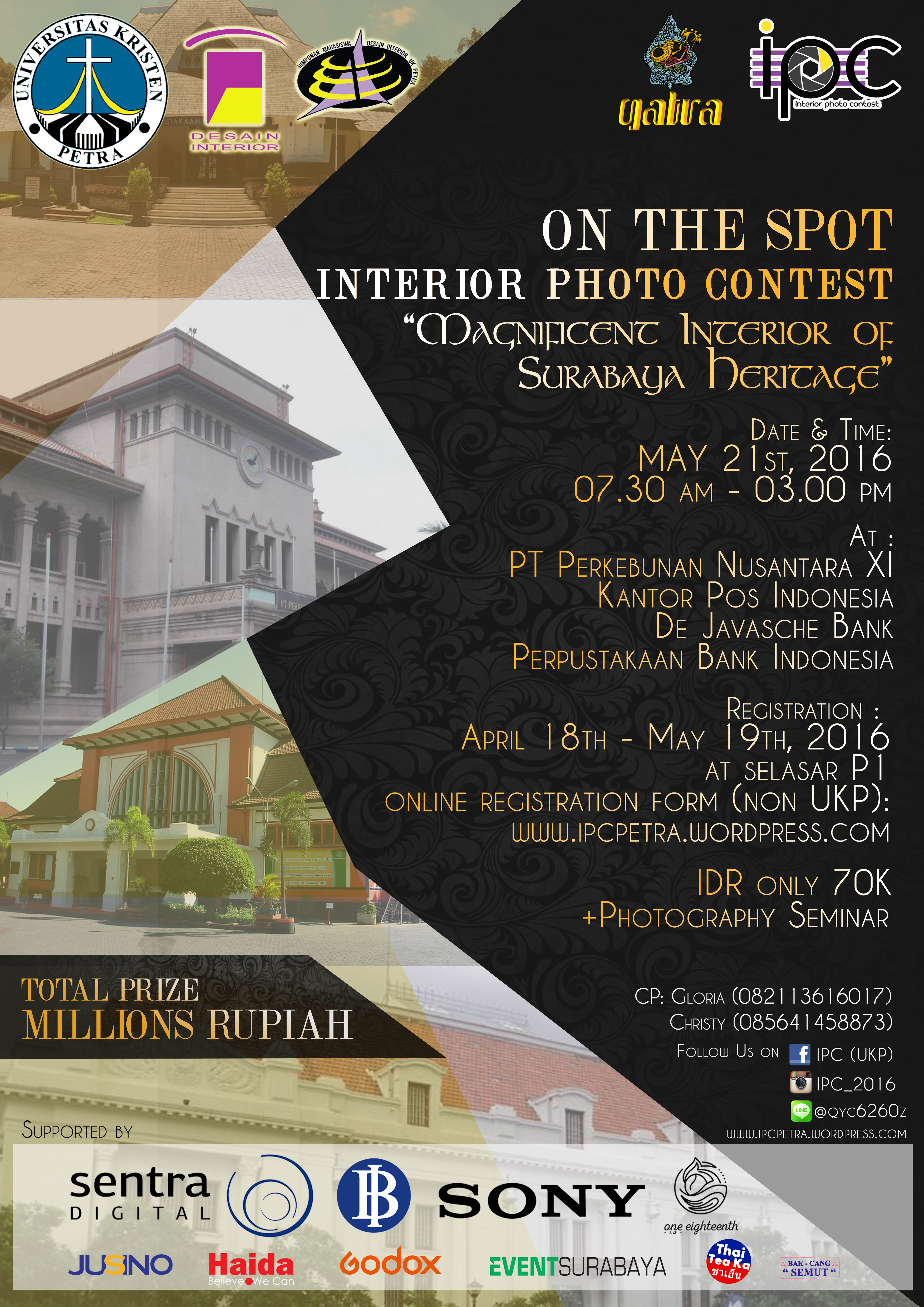 Jurusan Desain Interior Universitas Kristen Petra mengadakan lomba On the Spot Interior Photo Contest dengan tema Magnificent Interior of Surabaya Heritage. Acara ini dilaksanakan pada 21 Mei 2016. Pendaftaran dibuka pada 18 April hingga 19 Mei 2016 di selasar gedung P. kampus UK Petra. Lomba memperebutkan hadiah jutaan rupiah.
