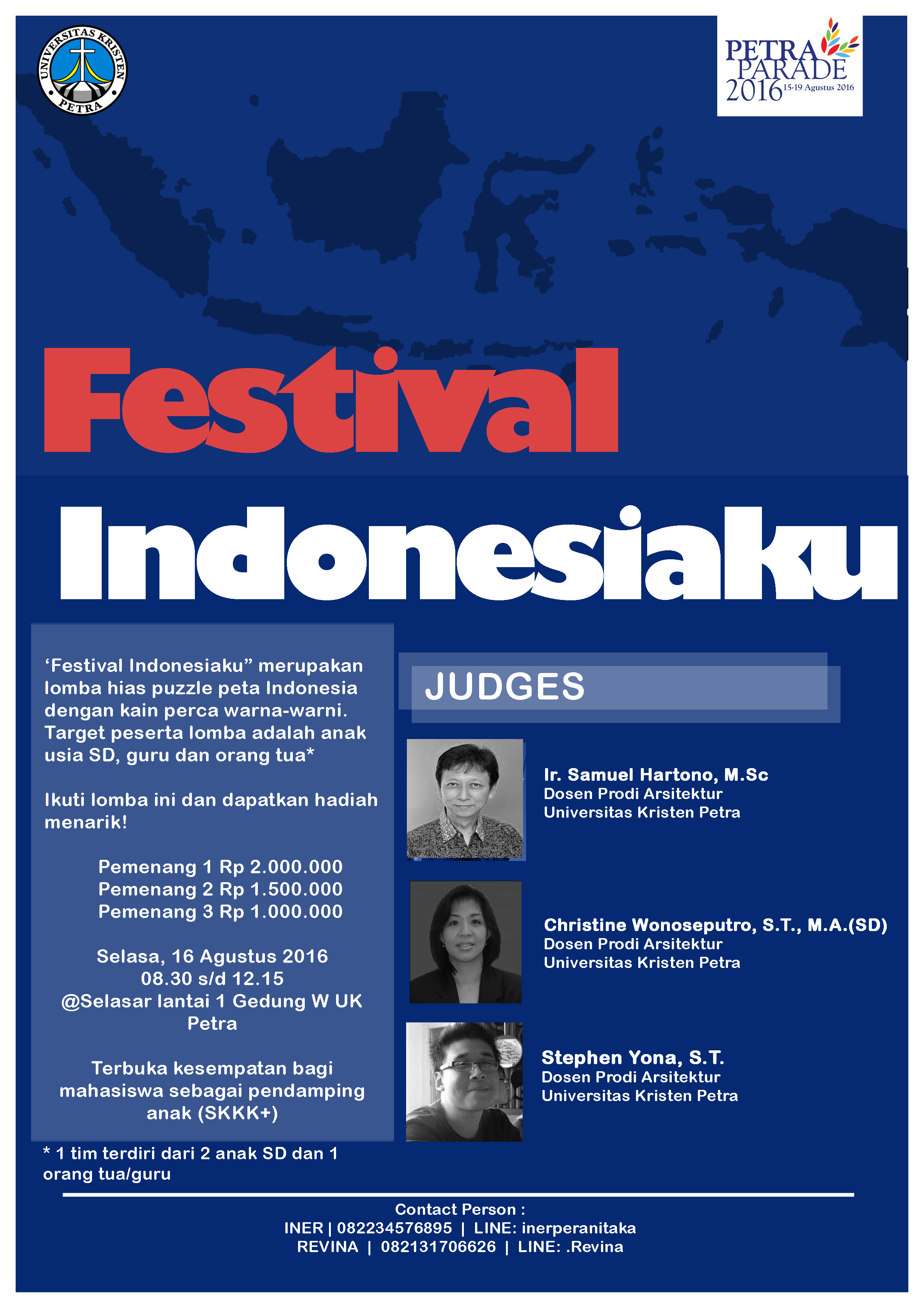 Untuk memeriahkan acara Petra Parade 2016 diadakan lomba menghias puzzle menggunakan kain perca dengan topik "Festival Indonesiaku" yang diadakan pada 16 Agustus 2016 di Gedung Radius Prawiro lantai 1.