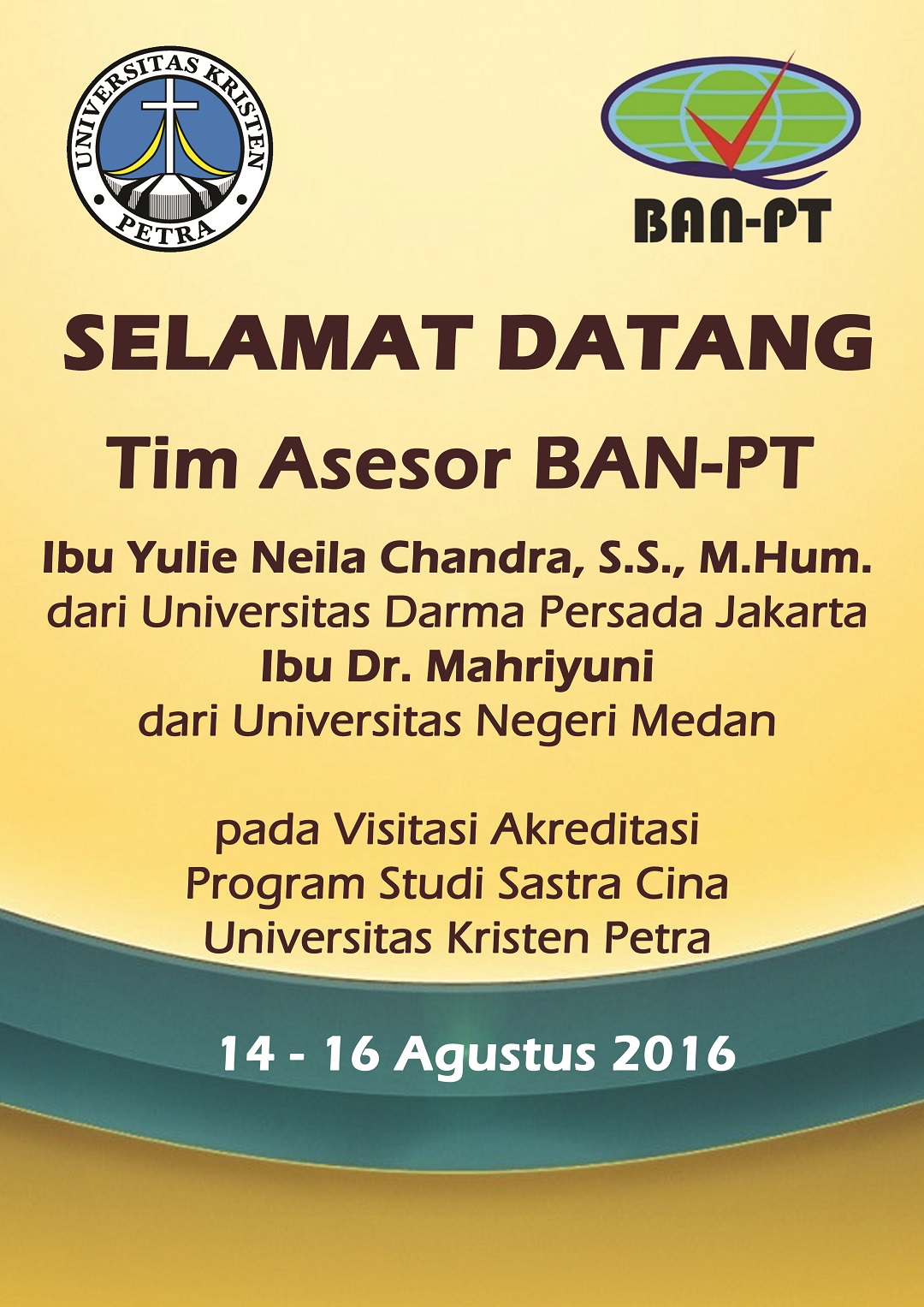 Pada tanggal 14-16 Agustus 2016 Program Studi Sastra Tionghoa UK Petra kedatangan tim Asesor BAN-PT. Tim yang terdiri dari Yulie Neila Chandra dan Mahriyuni ini untuk menilai keberadaan dari Program Studi Sastra Tionghoa.