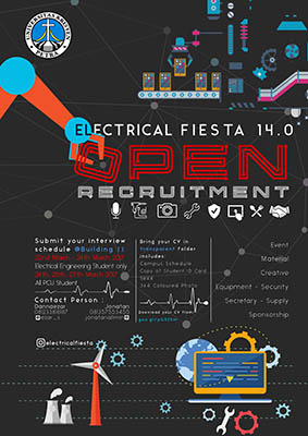 Program Studi teknik Elektro UK Petra membuka kesempatan bagi civitas UK Petra untuk menjadi panitia kegiatan "Electrical Fiesta 14.0".