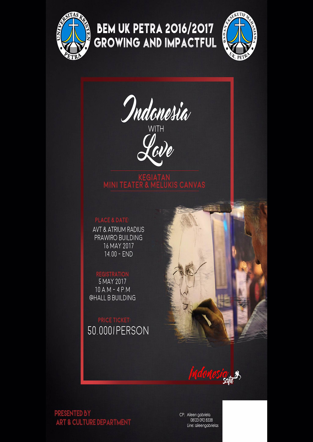 BEM Universitas Kristen Petra, mengadakan acara melukis dan pemutaran film pendek. Acara ini mengangkat tema "Indonesia with love". Dan dilaksanakan pada 16 Mei 2017 bertempat di gedung AV.T. dan Atrium Radius Prawiro.
