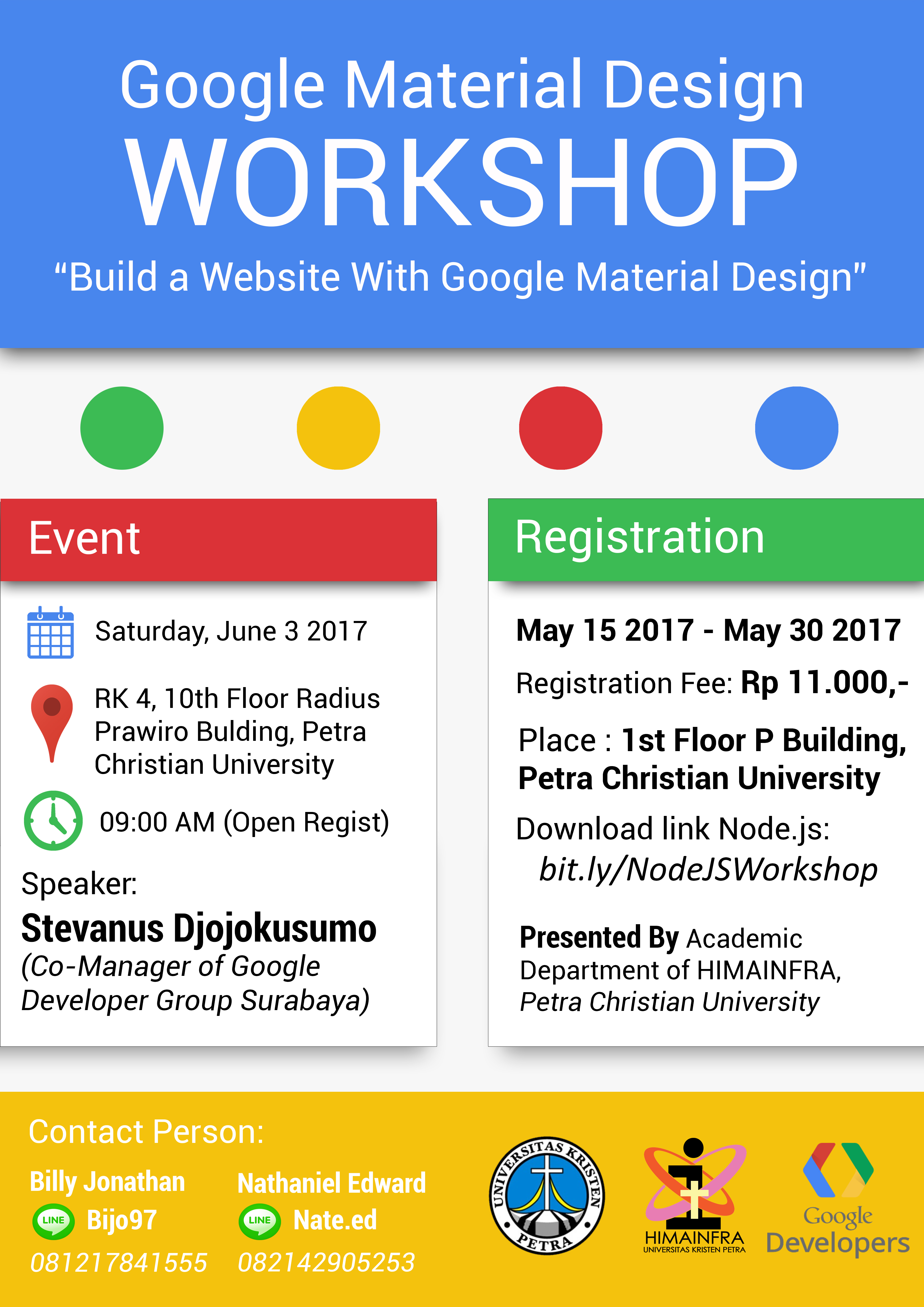 Progdi Teknik Informatika Universitas Kristen Petra Surabaya mengadakan workshop dengan tema "Google material design".
