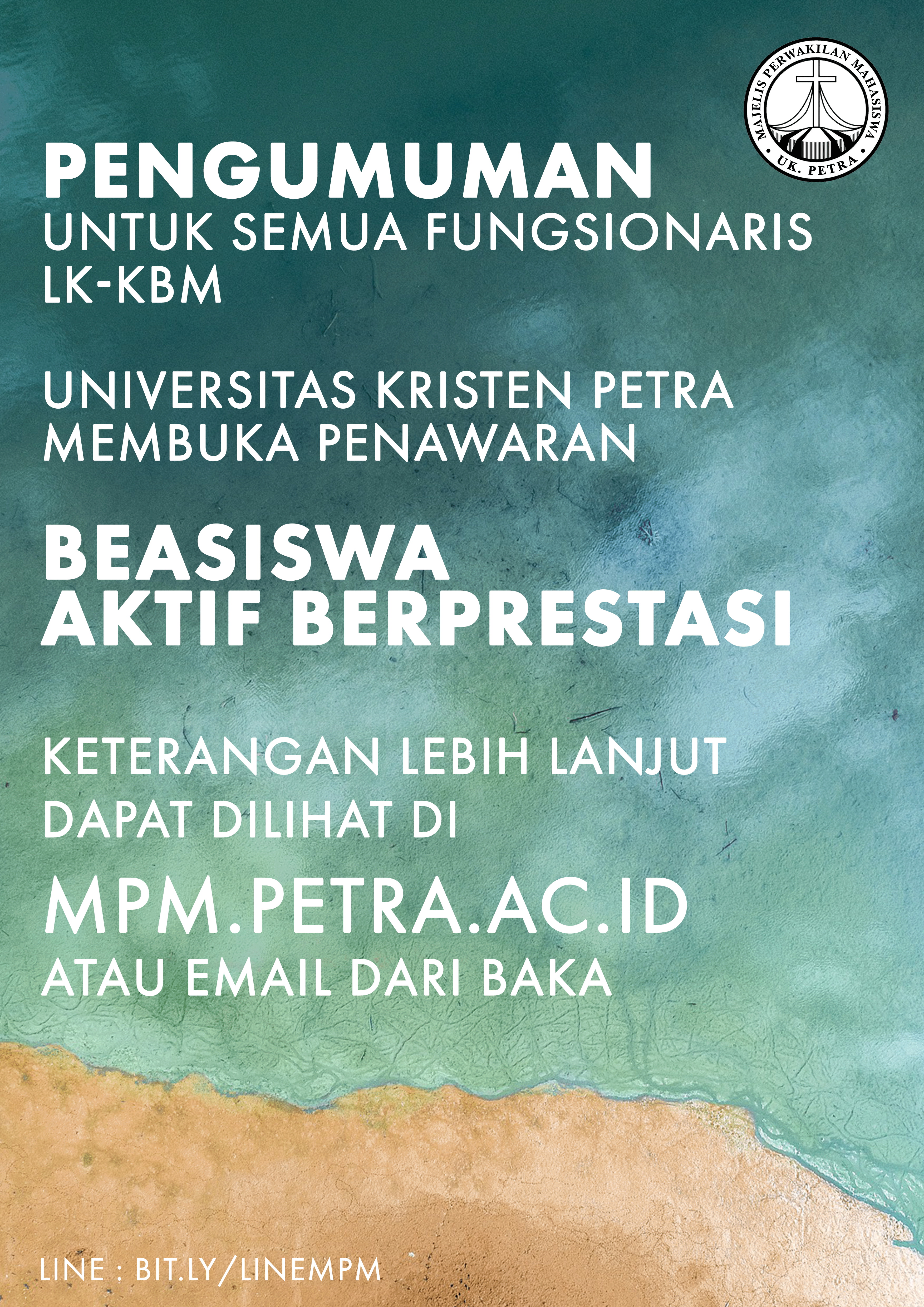 Universitas Kristen Petra Surabaya memberikan beasiswa bagi mahasiswa UK Petra yang berprestasi. Untuk keterangan lebih lanjut bisa dilihat di www.mpm.petra.ac.id