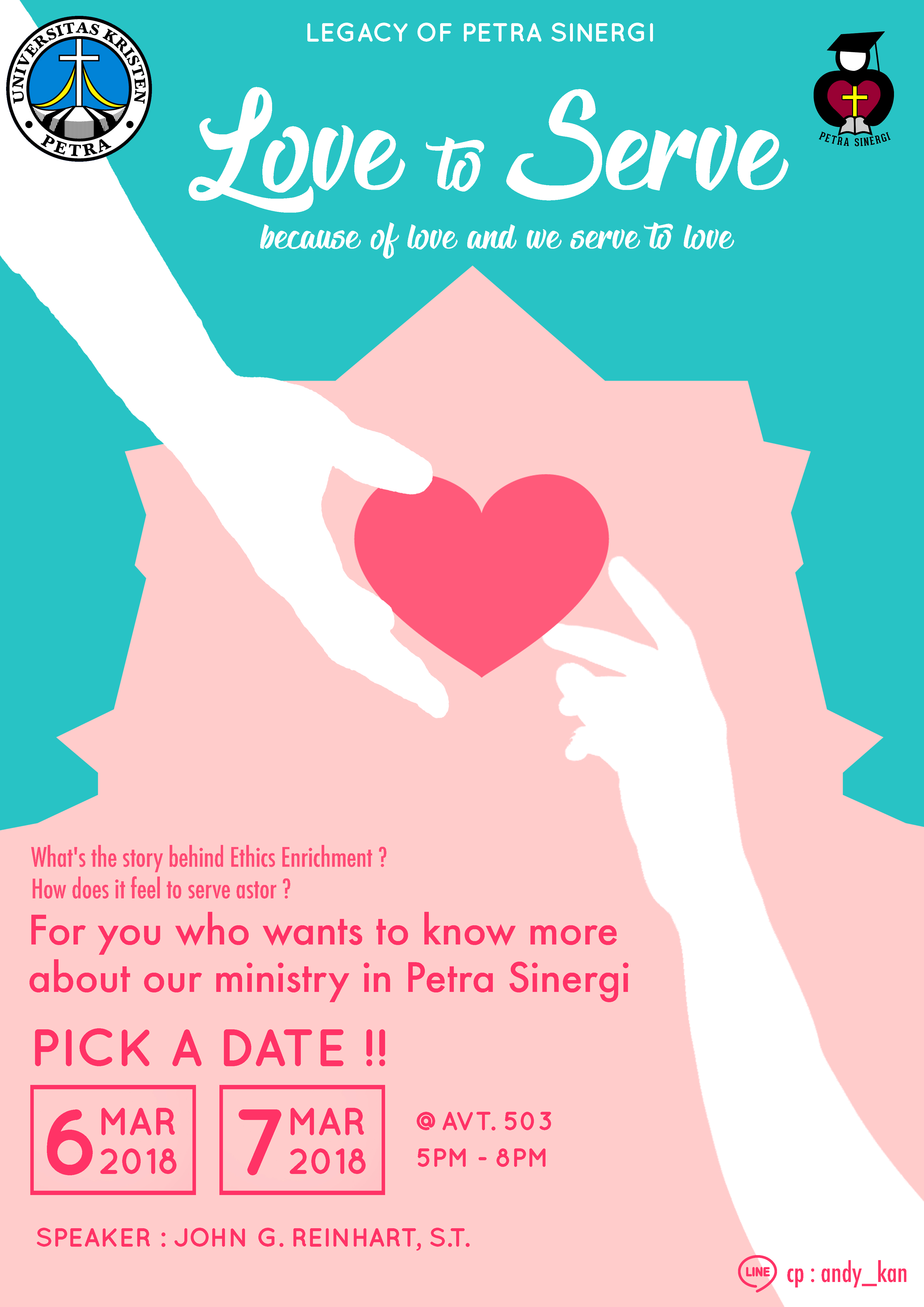 Petra Sinergy yang dinaungi Departemen Mata Kuliah Umum Universitas Kristen Petra mengadakan seminar tentang Love to Serve. Dengan menghadirkan John G. Reinhart acara ini diadakan pada tanggal 6-7 Maret 2018 bertempat di AV T.503. Universitas Kristen Petra Surabaya