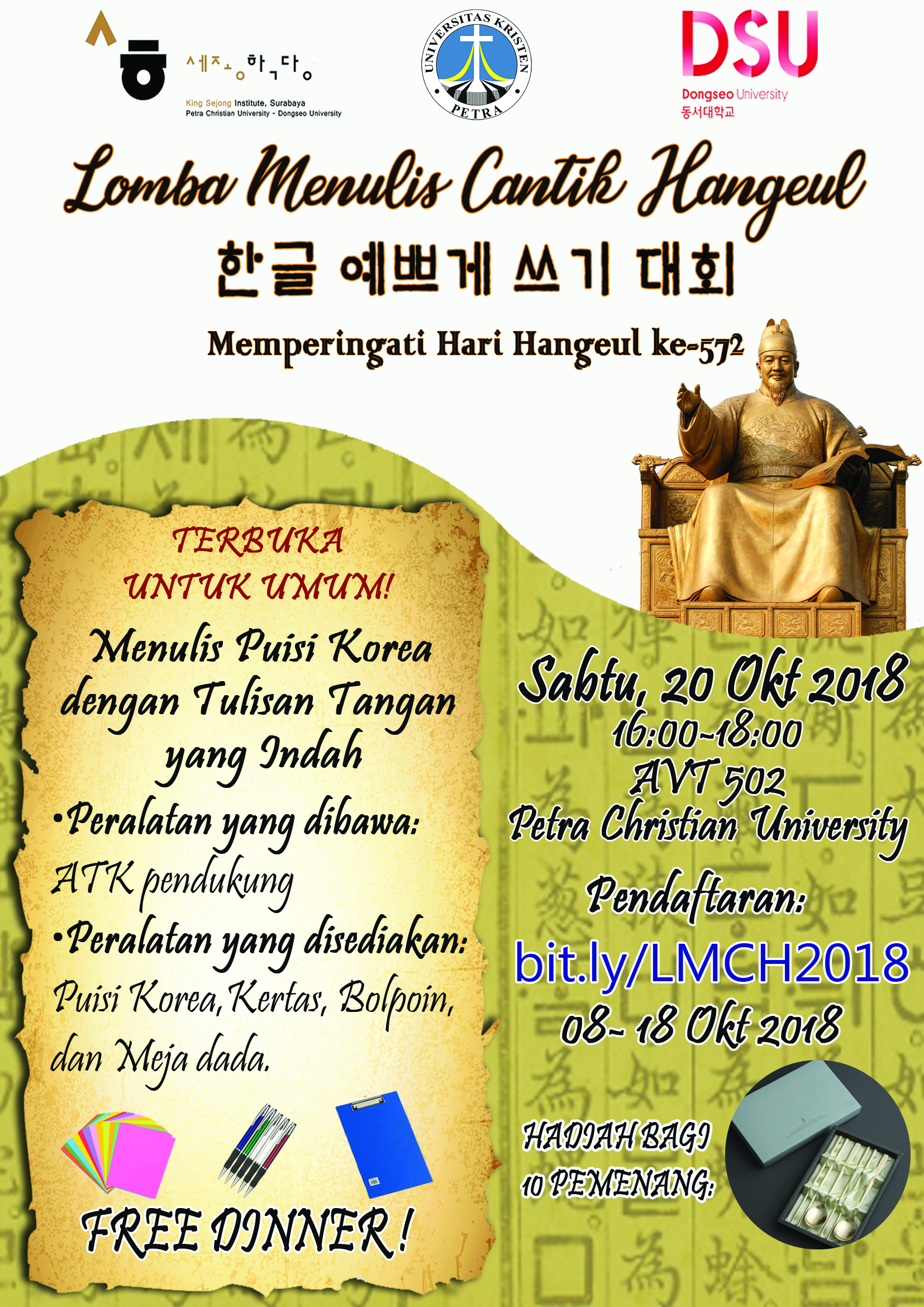 Program Studi Sastra Tionghoa Universitas Kristen Petra Surabaya, mengadakan lomba menuliscantik Hangeul`