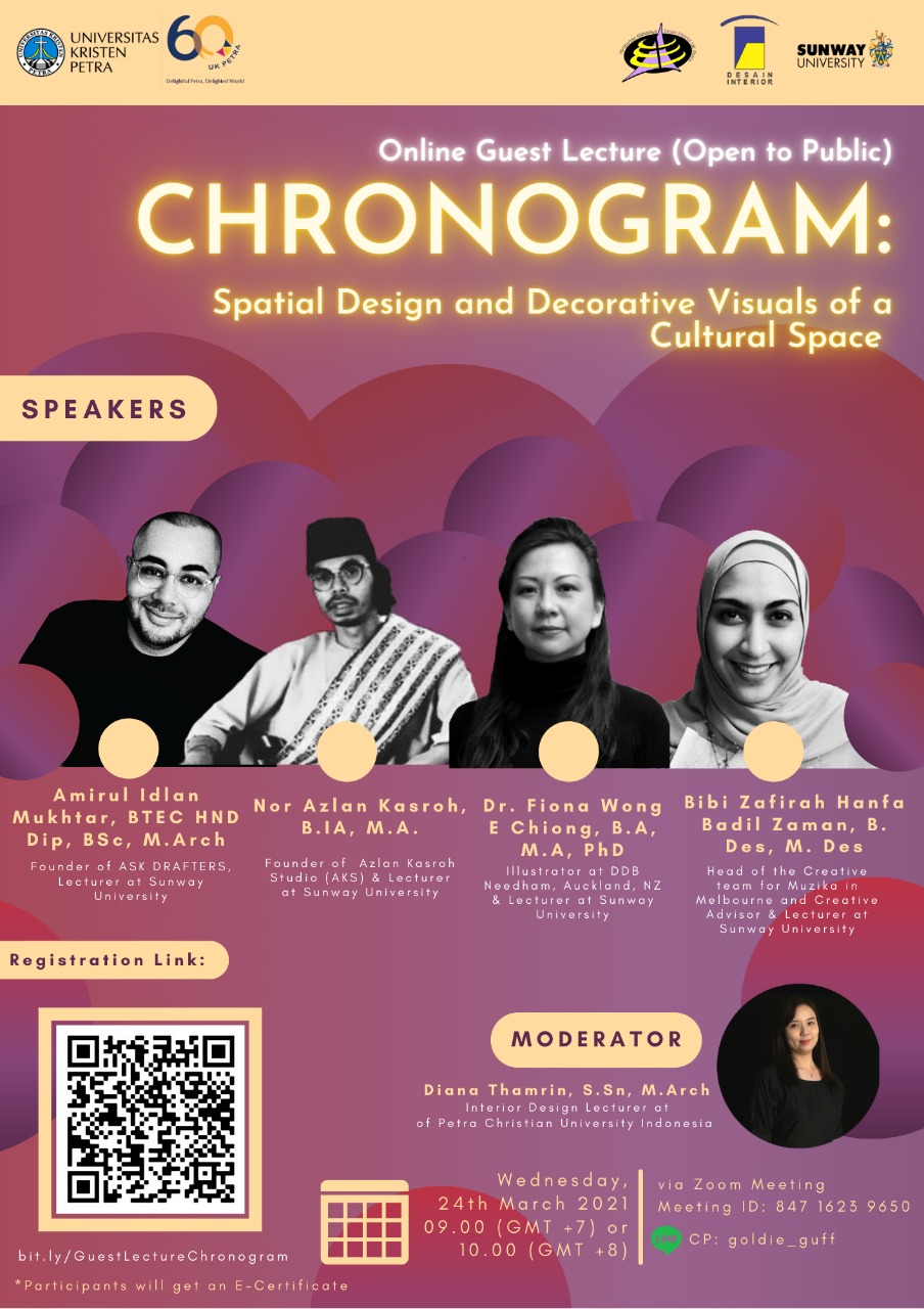 Program Studi Desain Interior Universitas Kristen Petra Surabaya pada tanggal 24 Maret 2021 mengadakan kuliah umum dengan topik "Chronogram". Acara ini dilaksanakan secara daring dengan aplikasi Zoom.