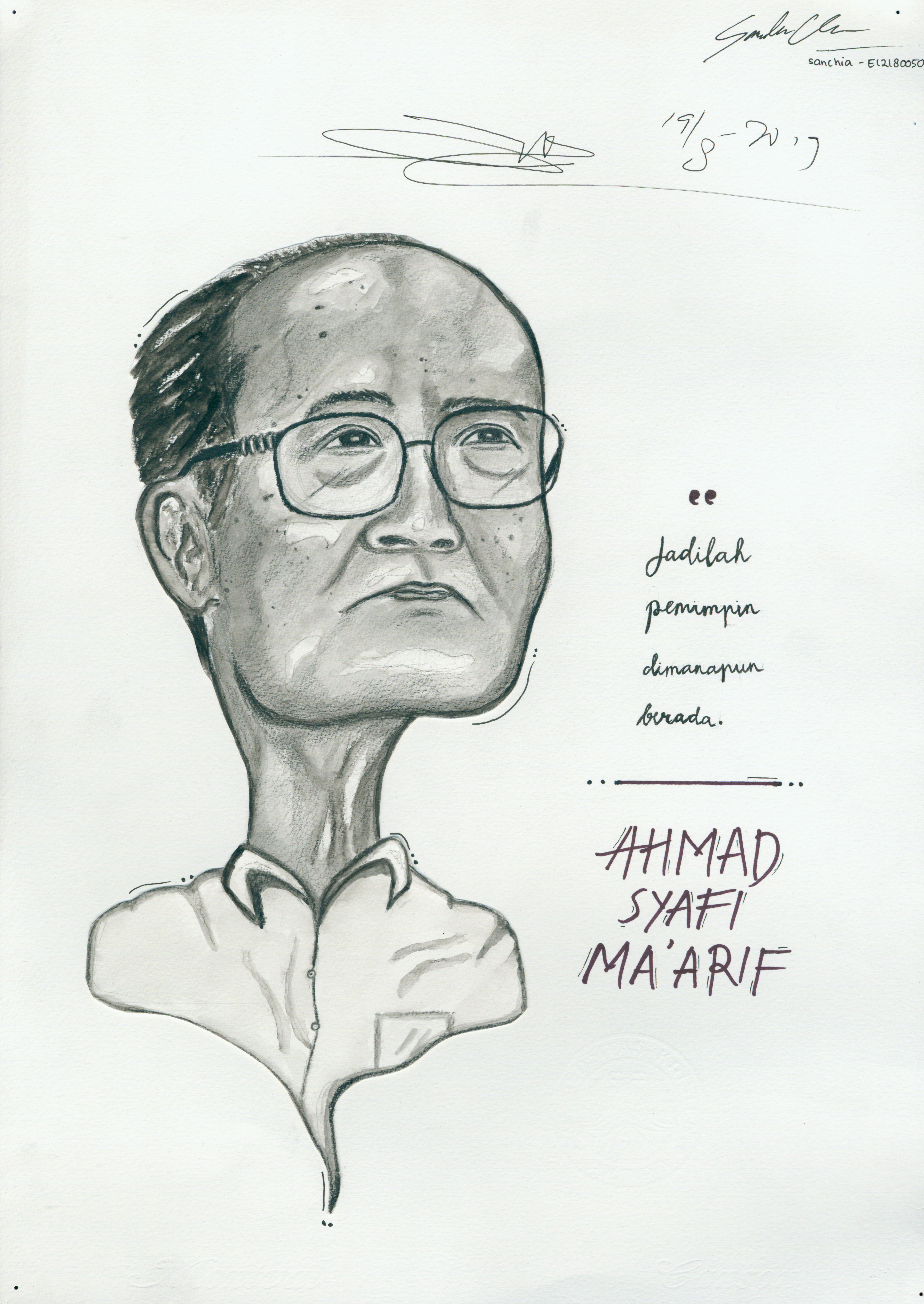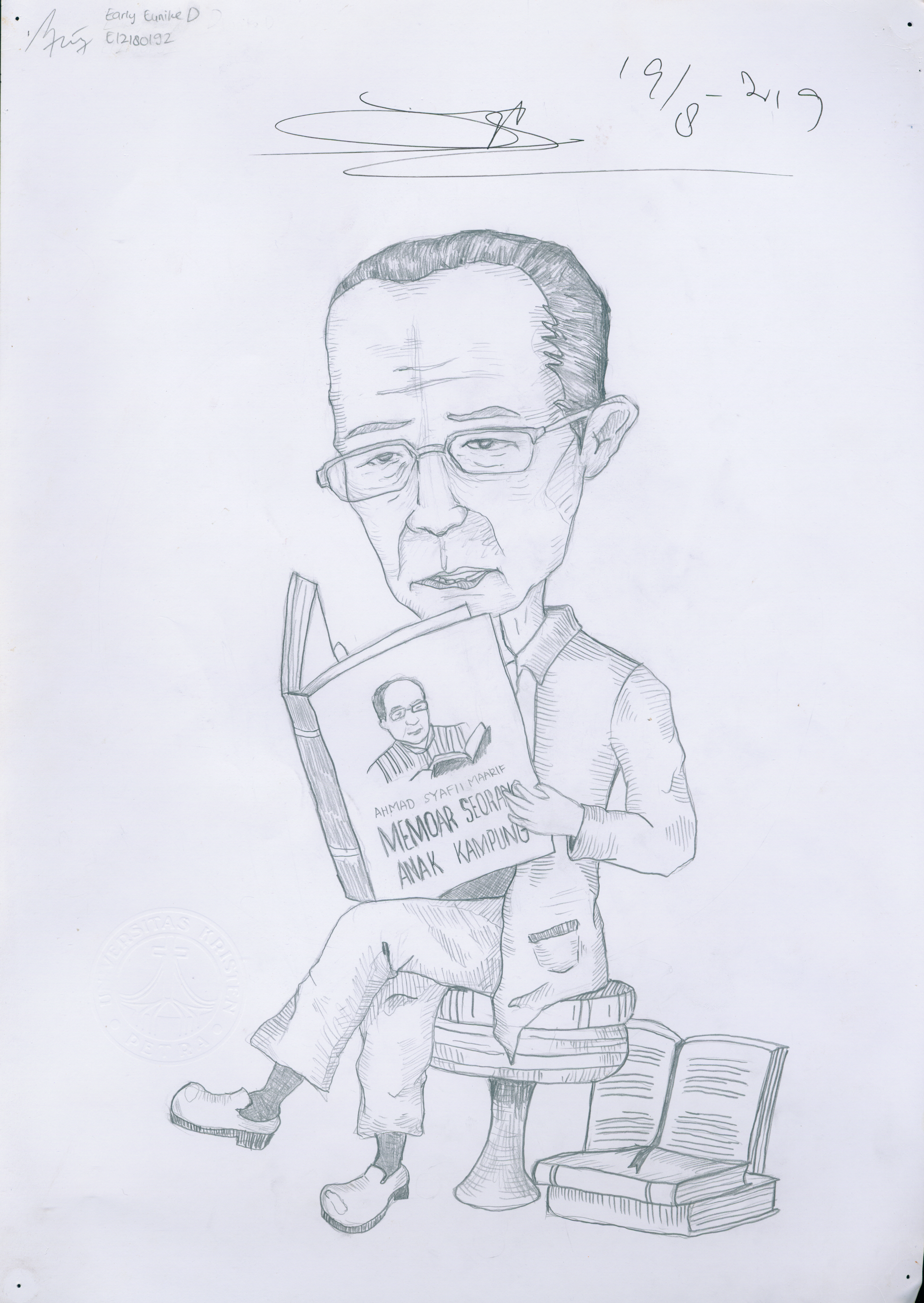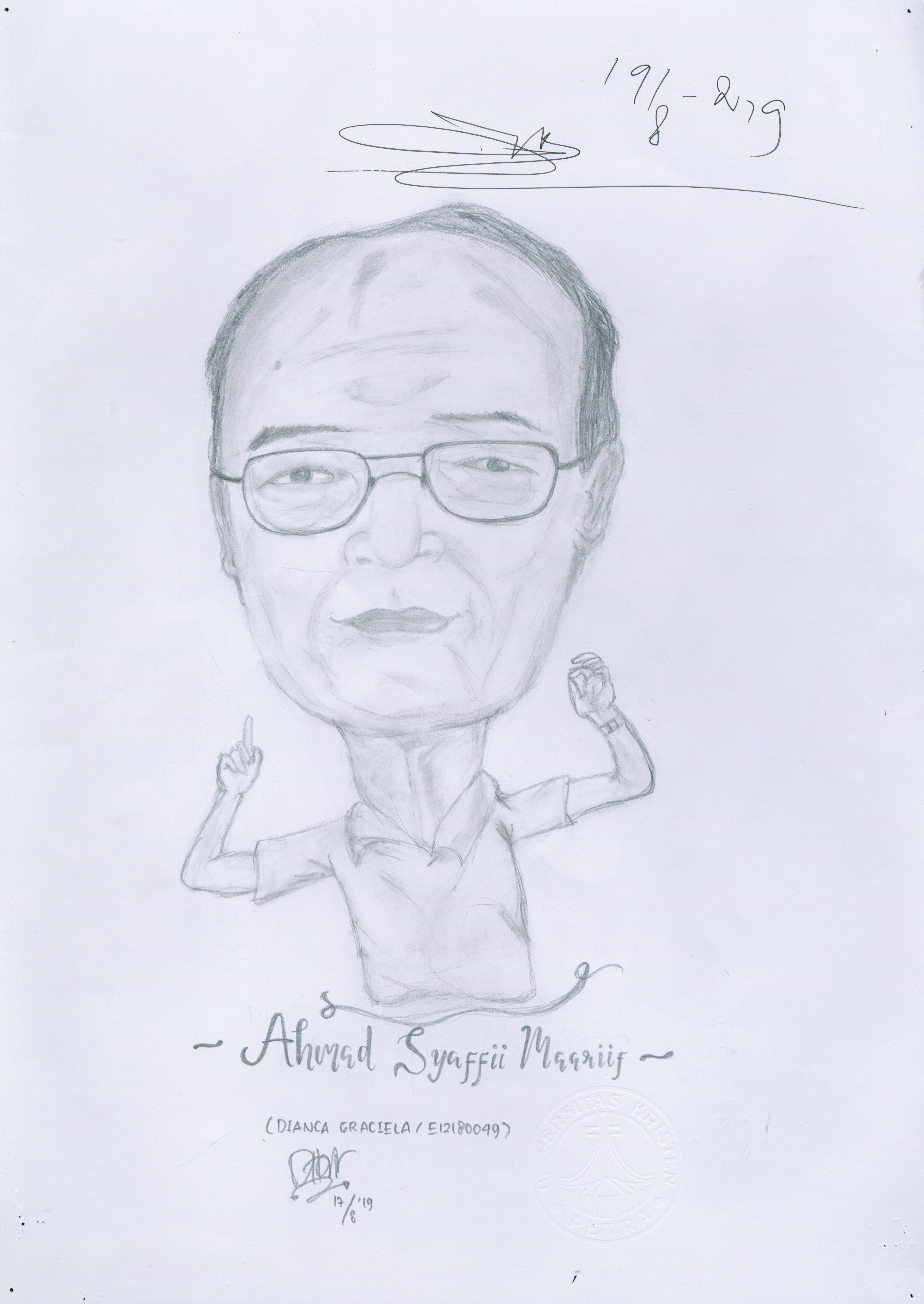 Dalam rangka seminar Wawasan kebangsaan yang bertajuk dari aku untuk Indonesiaku, pada tanggal 19 Agustus 2019. Departemen Mata kuliah Umum UK Petra mengadakan lomba sketsa. Dengan obyek para narasumber seminar tersebut. Telah terpilih 4 karya yaitu: Sidartha Suteja (E11180170), Early E.D. (E12180192), Dianca G. (E12180049), Sanchia C. (E12180050) yang telah berhasil melukis bapak Ahmad Syafii Maarif.