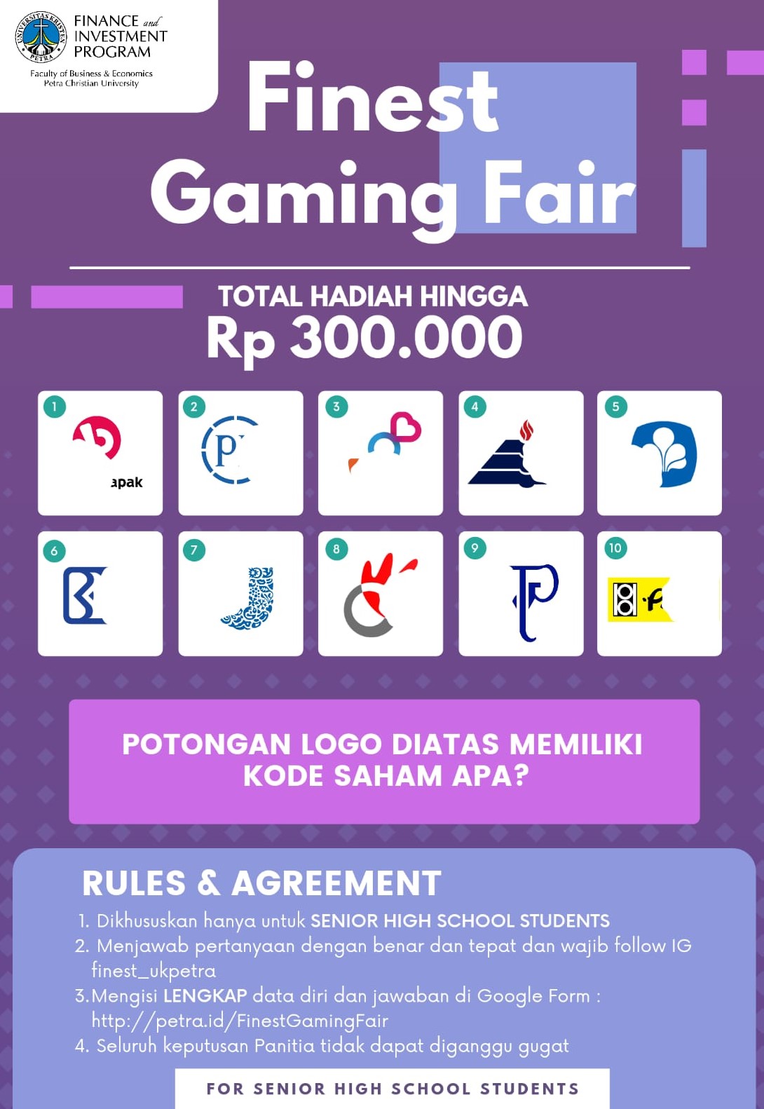 Kuis tebak gambar diadakan oleh Prgram manajemen Keuangan Universitas Kristen Petra, informasi lebih lengkap silahkan lihat di IG finest_ukpetra.