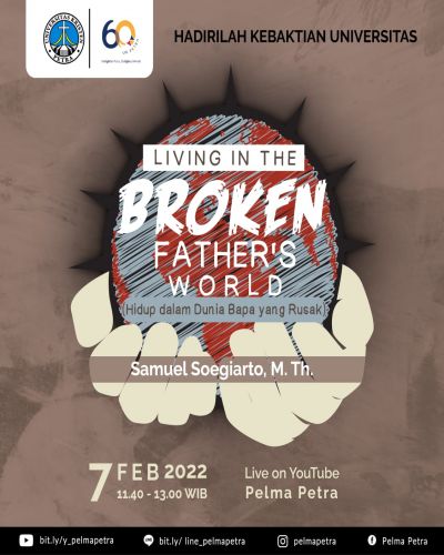 Pada tanggal 07 Februari 2022 Jam 11.40 - 13.00 WIB, Universitas mengundang seluruh civitas UK Petra, untuk hadir dalam kebaktian universitas setiap hari Senin. Dengan tema: living the broken father world's (hidup dalam dunia bapa yang rusak) pada ibadah kali ini hadir bapak Samuel Soegiarto M.Th. sebagai pengkhotbah. Ibadah ini dilaksanakan secara online melalui aplikasi Youtube.