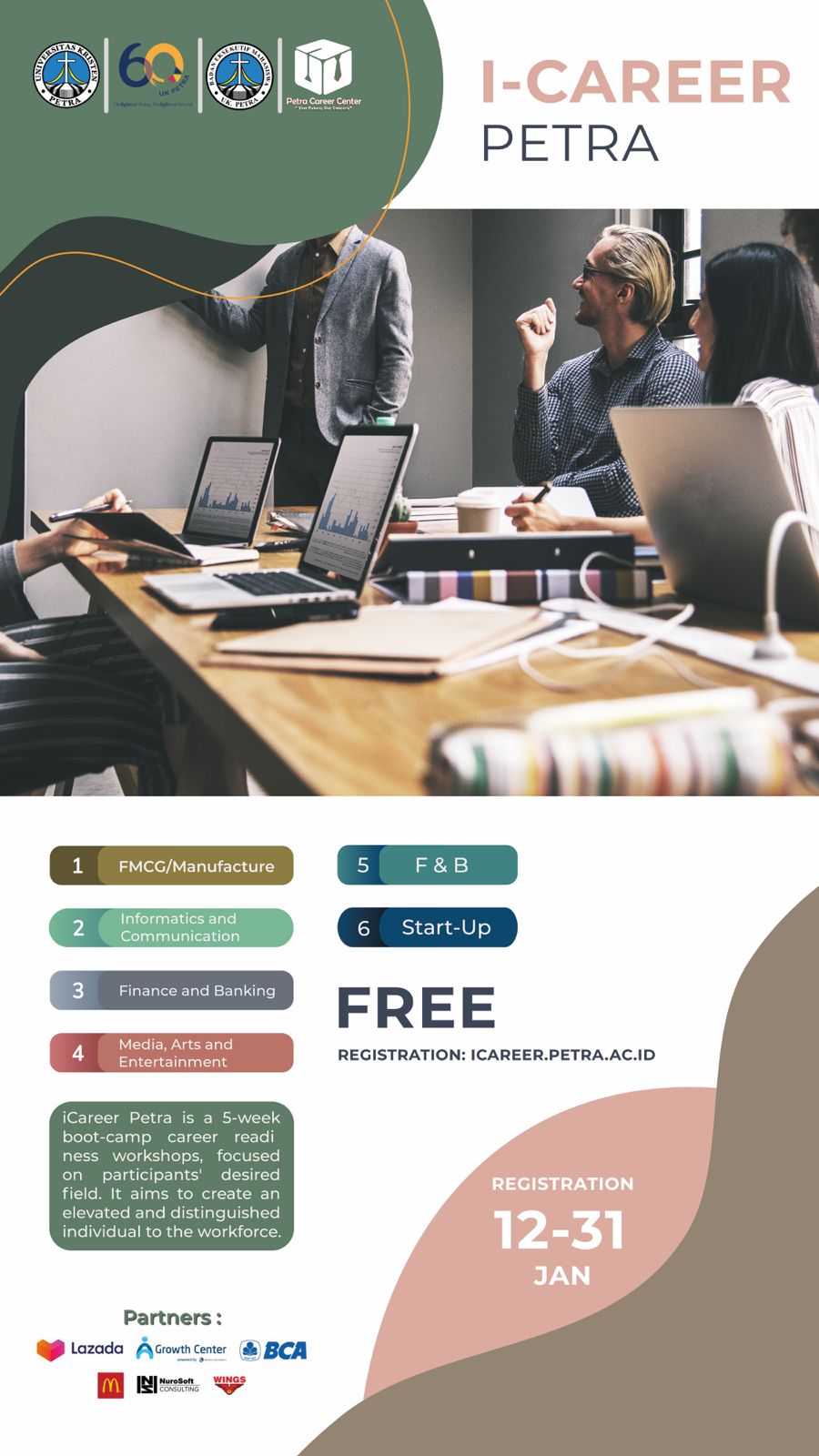 Petra Career Center dan Badan Eksekutif Mahasiswa UK Petra mengadakan rangkaian acara iCareer, kegiatan ini punya misi untuk mendampingi calon lulusan/fresh-grad melakukan persiapan ganda "menjual diri" ke perusahaan-perusahaan impian mereka. Metode yang digunakan sedikit berbeda yaitu dengan sistem mentornship ke bidang usaha yang ditentukan yang juga berasal dari perusahaan-perusahaan besar. Untuk pendaftaran dibuka dari tanggal 12 - 31 Januari 2021