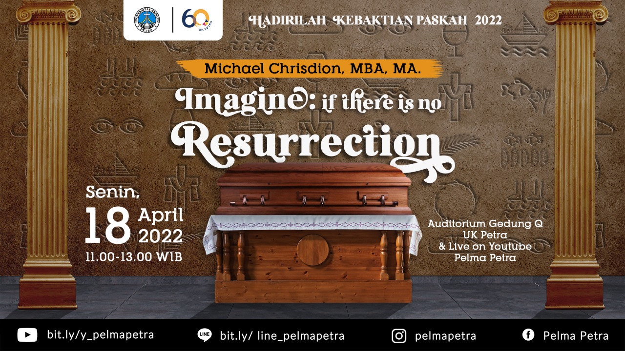 Kebaktian Paskah 2022 akandiadakan oleh Universitas Kristen Petra Pada tanggal 18 April 2022 jam 11.00 - 13.00 WIB bertempat di Auditorium Gedung Q. Pada ibadah ini akan diangkat tema Imagine if there is no resurrection dengan pemngkhotbah bapak Michael Chrisdion, M.B.A.., M.A.