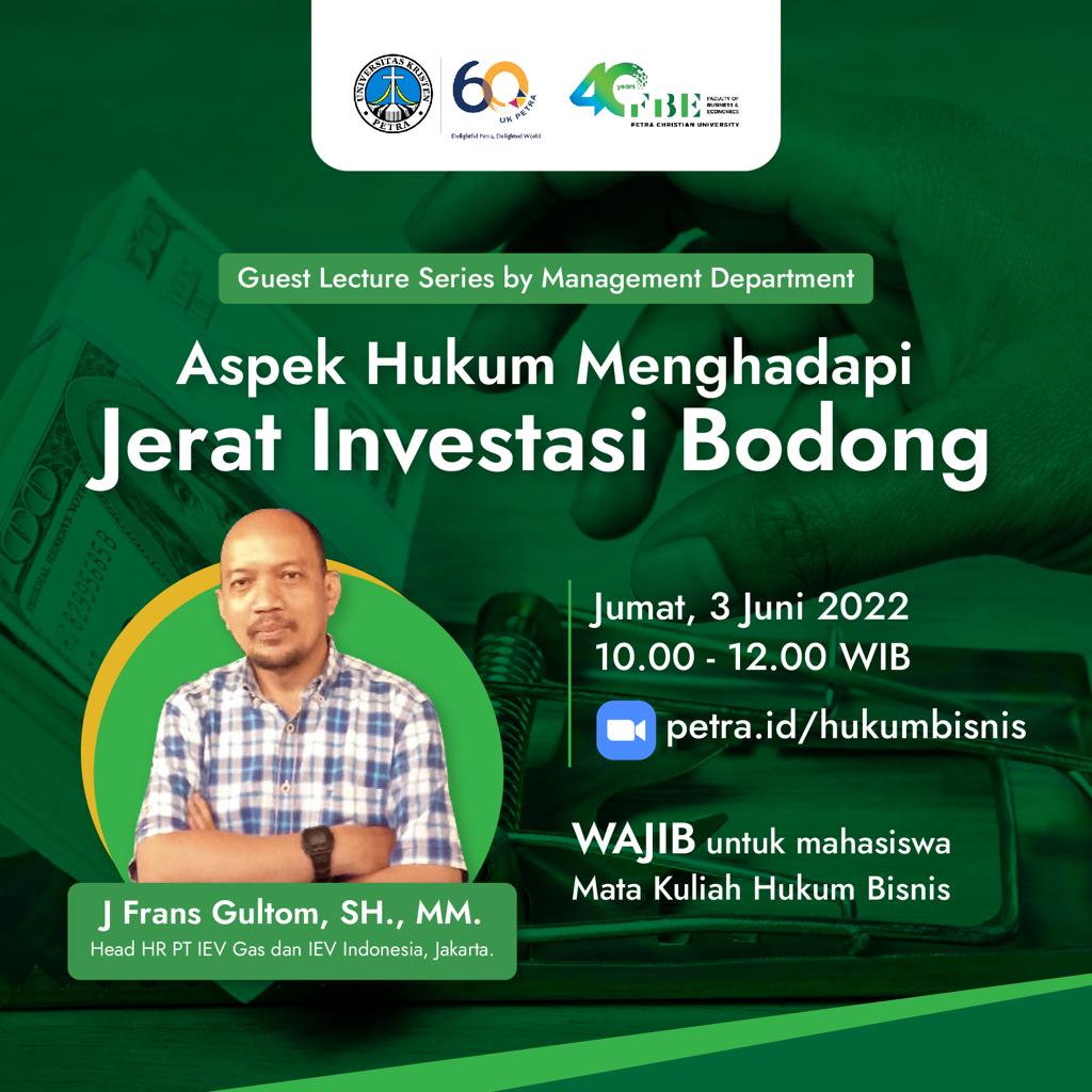 Kuliah tamu mata kuliah hukum bisnis "aspek hukum menghadapi jerat investasi bodong"