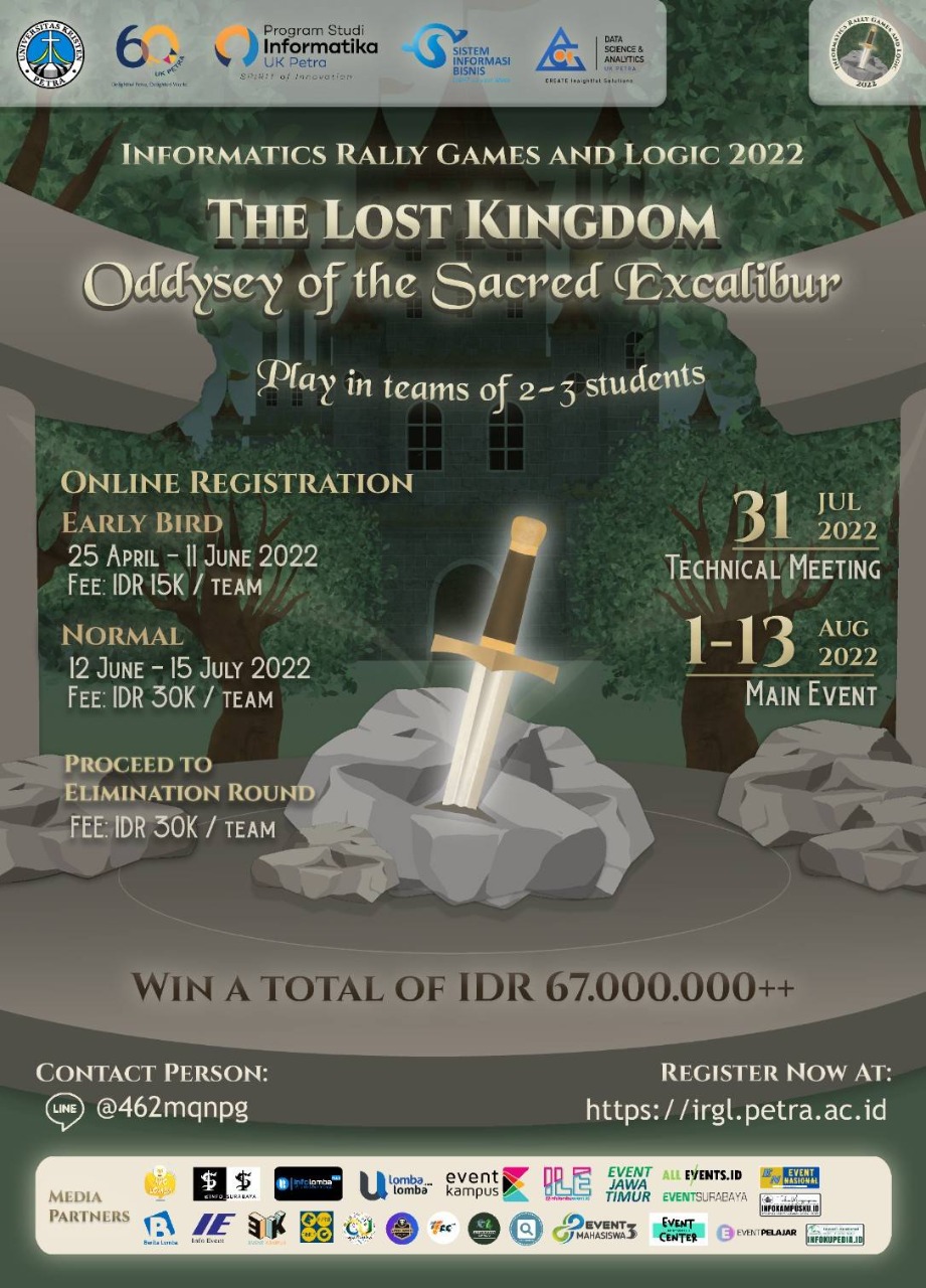 IRGL 2022 ini merupakan acara tahunan dari Program Studi Informatika sebagai ajang promosi ke para siswa SMA se Indonesia. Informatics Rally Games and Logic (IRGL 2022) diadakan pada tanggal 1 - 13 Agustus 2022. Informasi lebih lengkap ada di https://irgl.petra.ac.id