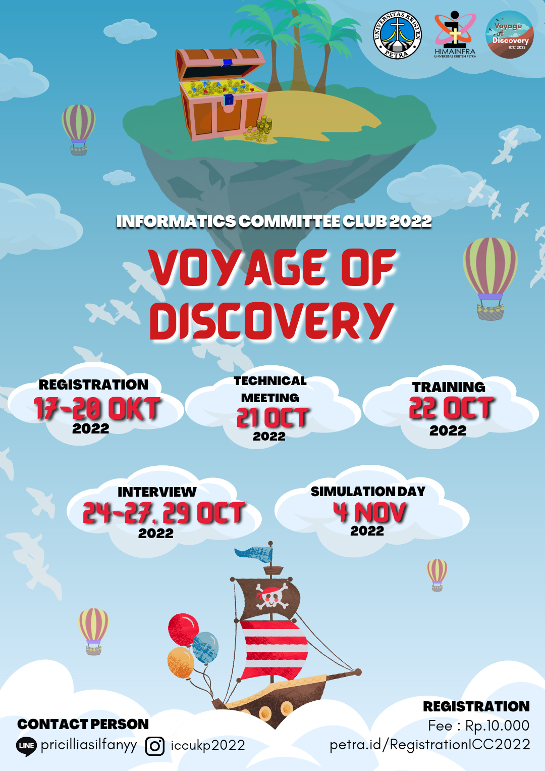 Informatics Committee Club 2022 adalah kegiatan Bank Panitia yang diadakan oleh HIMAINFRA bertemakan "Voyage of Discovery". Kegiatan ini berupa pelatihan dan simulasi. Pada kegiatan ini, peserta akan dilatih dan melakukan simulasi sebagai panitia. Untuk info lebih lengkap ada di petra.id/RegistrationICFC2022
