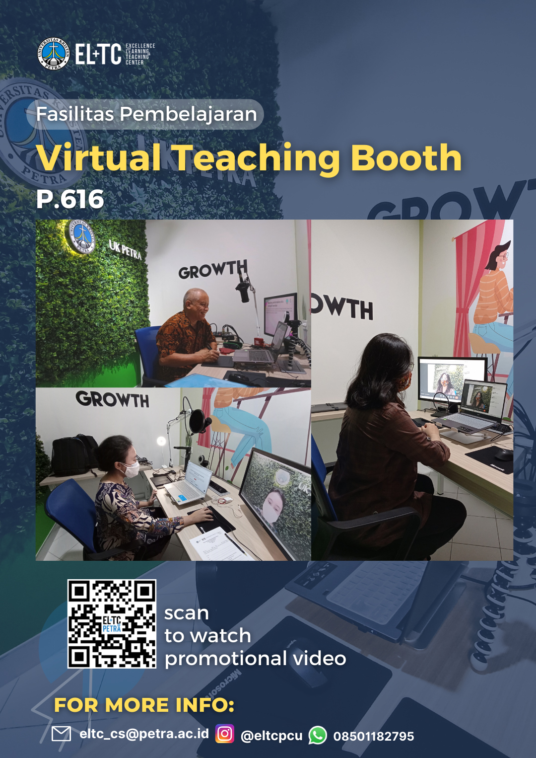 Untuk menunjang proses belajar mengajar dengan berbasis hybrid, UK Petra telah membuka kelas atau ruangan yang bisa dipakai untuk menunjang proses tersebut. Fasilitas pembelajaran: virtual teaching booth ini ada di gedung P.616.