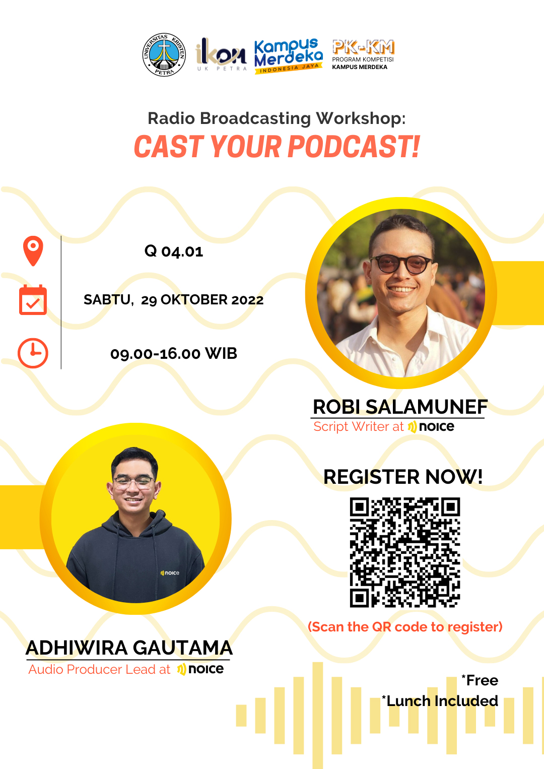 Program Studi Ilmu Komunikasi Universitas Kristen Petra Surabaya pada tanggal 29 Oktober 2022 jam 09.00 - 16.00 WIB mengadakan avcara workshop dengan tema "cast your podcast". Dengan menghadirkan Robi salamunef dan Adhiwira Gautama sebagai pembicara.
