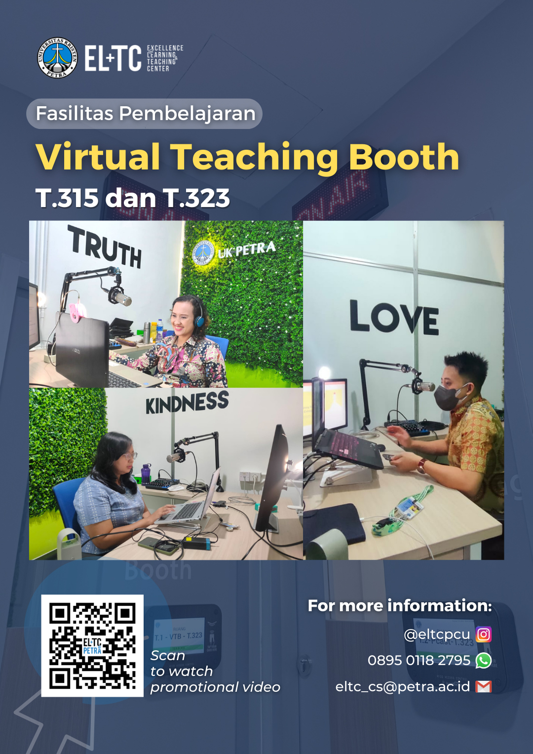 Untuk menunjang proses belajar mengajar dengan berbasis hybrid, UK Petra telah membuka kelas atau ruangan yang bisa dipakai untuk menunjang proses tersebut. Fasilitas pembelajaran: virtual teaching booth ini ada di gedung T.315 dan T.323