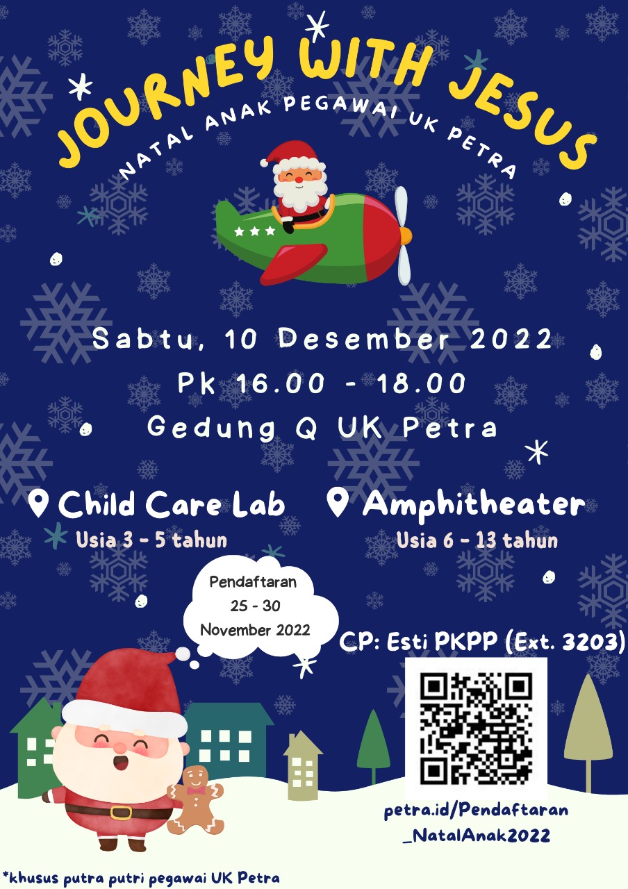Natal anak pegawai UK Petra tahun 2022 diadakan pada Sabtu 10 Desember 2022 bertempat di gedung Q Universitas Kristen Petra Surabaya.