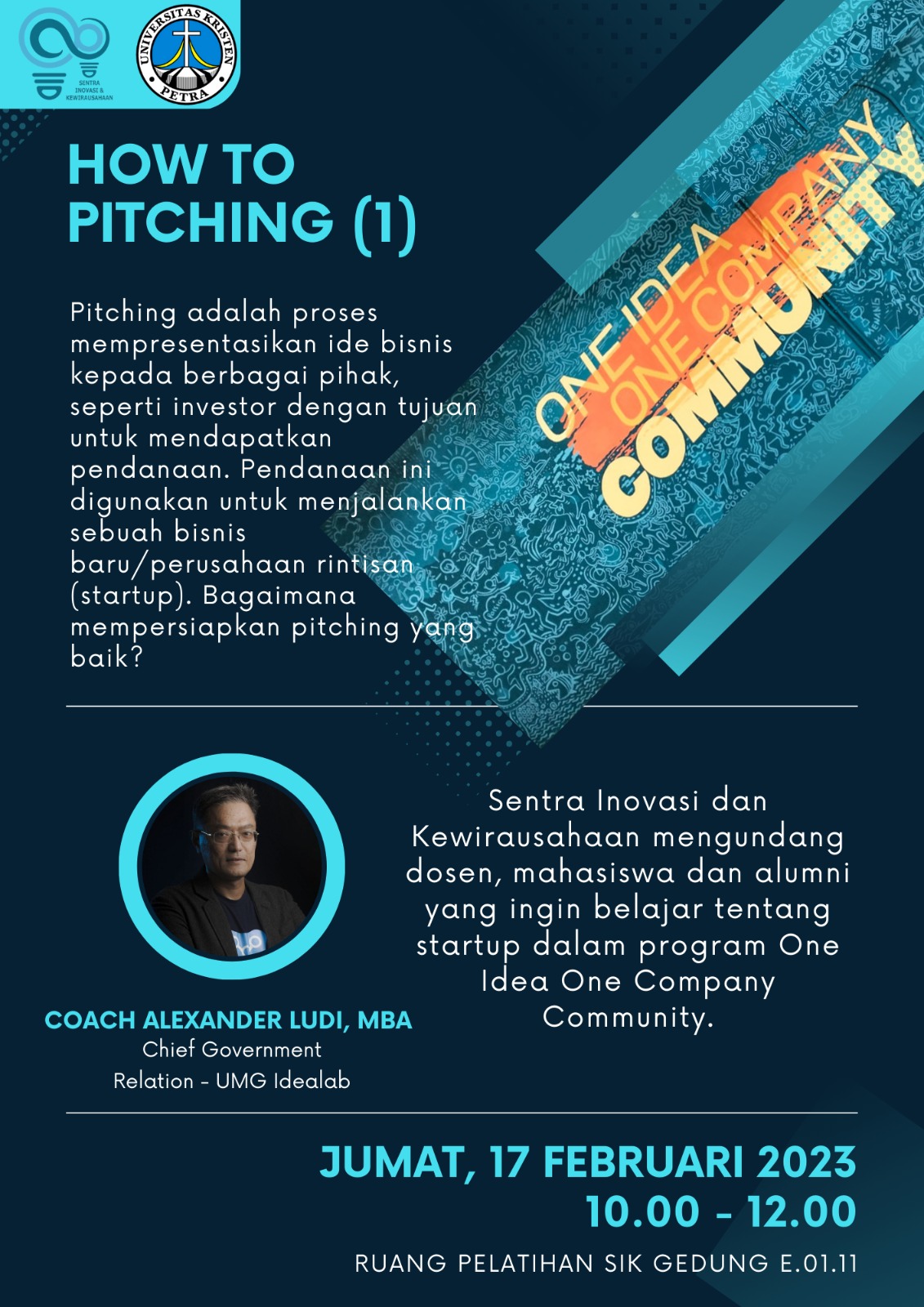 Lembaga Penelitian dan Pengabdian Masyarakat Universitas Kristen Petra, pada tanggal 17 Februari 2023 mengadakan acara pelatihan dengan tema One idea one company community - How to pitching. Dengan narasumber Alexander Ludi, MBA.