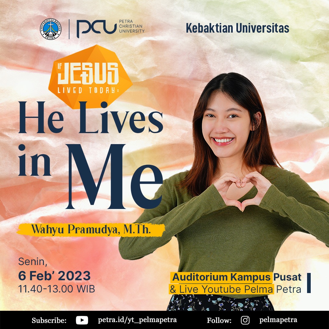 Kebaktian Universitas setiap hari Senin, diadakan pada tanggal 06 Februari 2023 jam 11.40 - 13.00 WIB bertempat di Auditorium kampus pusat Universitas Kristen Petra Surabaya. Pada kebaktian ini mengangkat tema if Jesus lived today (he lives in me) dengan pengkhotbah bapak Wahyu Pramudya, M.Th.