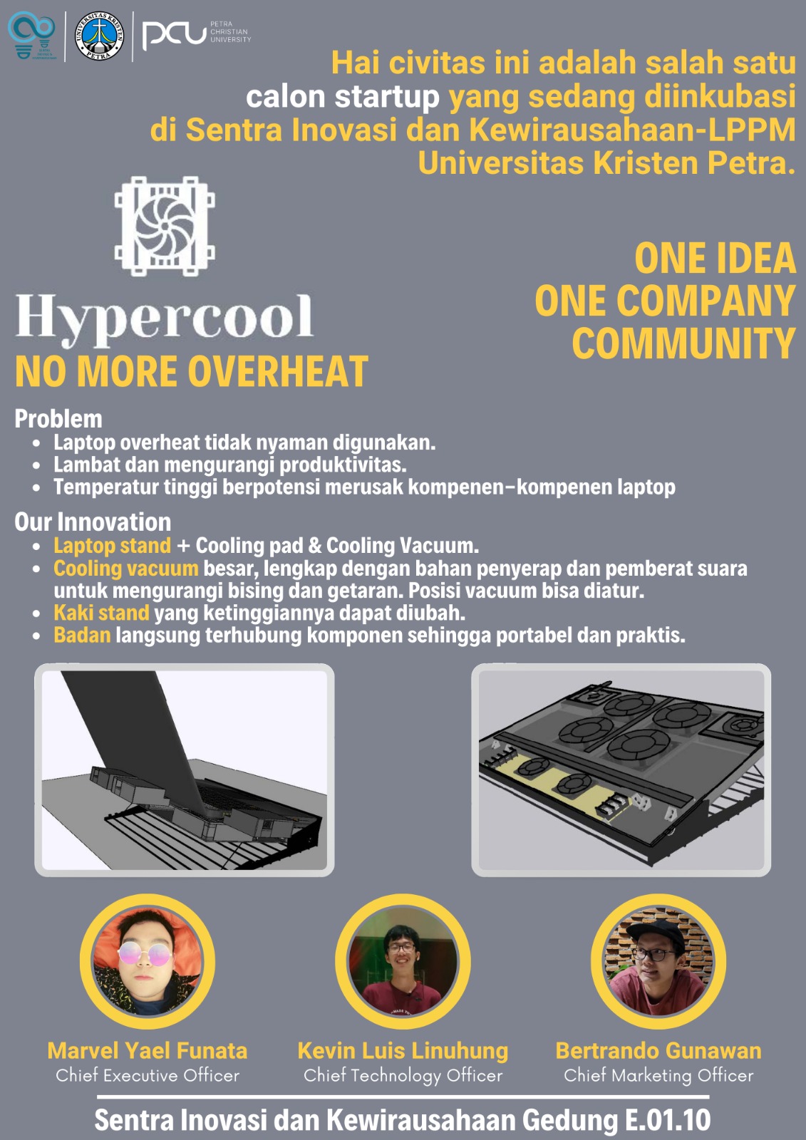 Lembaga Penelitian dan Pengabdian Masyarakat Universitas Kristen Petra Surabaya, telah membuka calon startup baru yang sedang diinkubasi. Hypercool itulah namanya.