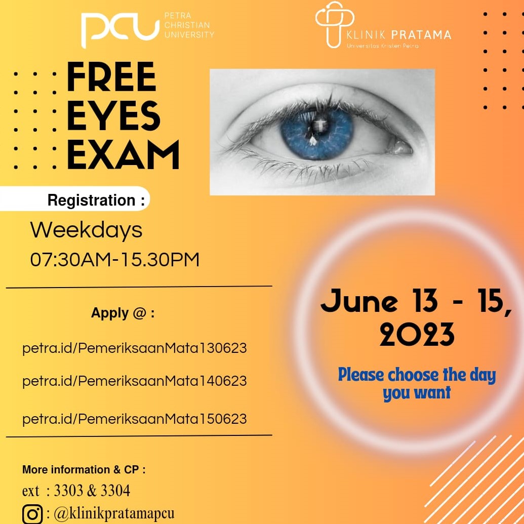 Pada tanggal 13-15 Juni 2023 Poliklinik UK Petra akan mengadakan pemeriksaan mata secara gratis.