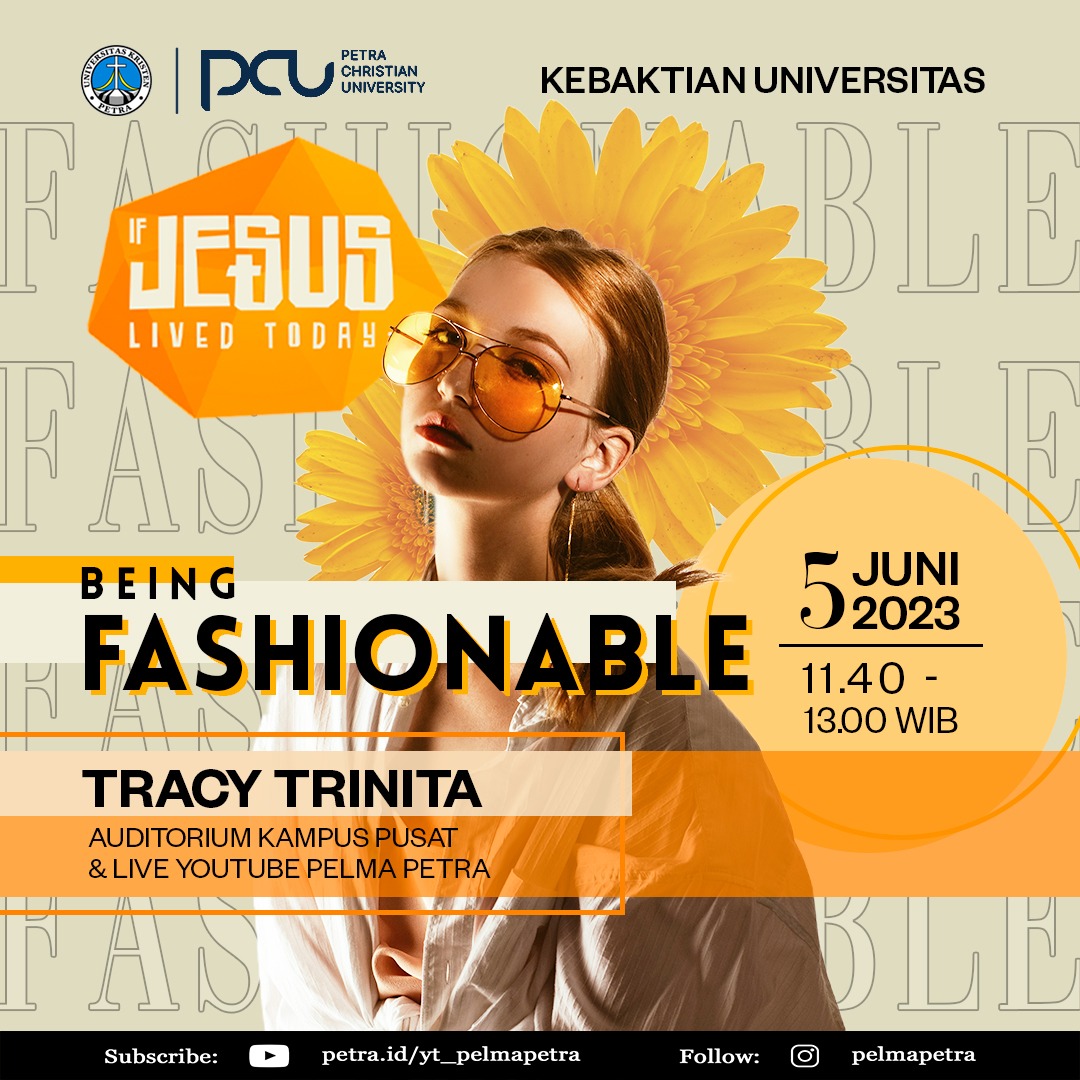 Kebaktian Universitas setiap hari Senin, diadakan pada tanggal 05 Juni 2023 jam 11.40 - 13.00 WIB bertempat di Auditorium kampus pusat Universitas Kristen Petra Surabaya. Pada kebaktian ini mengangkat tema "if Jesus lived today being being fashionable" dengan pengkhotbah ibu Tracy Trinita