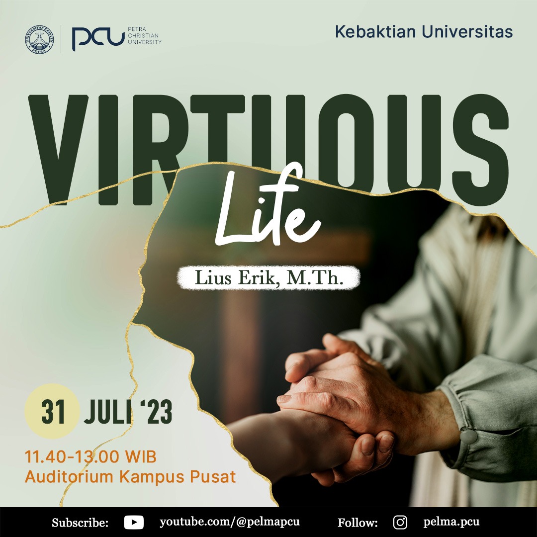Kebaktian Universitas setiap hari Senin, diadakan pada tanggal 31 Juli 2023 jam 11.40 - 13.00 WIB bertempat di Auditorium kampus pusat Universitas Kristen Petra Surabaya. Pada kebaktian ini mengangkat tema "Virtuous life" dengan pengkhotbah bapak Lius Erick, M.Th.
