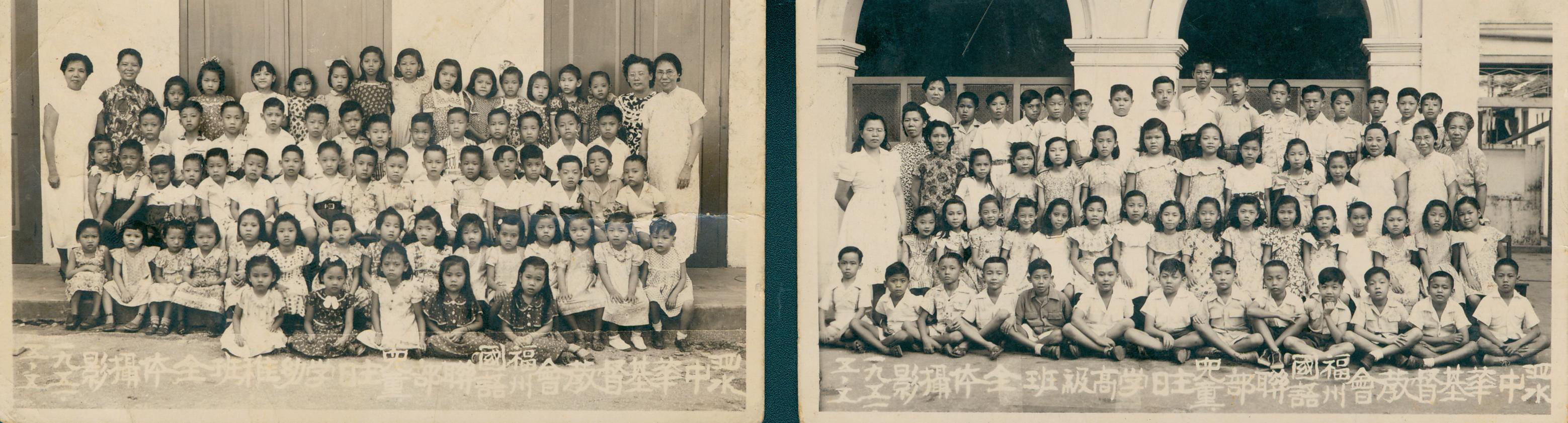 Sekolah Dasar Qiao Nan Jalan Bakmi 48 Surabaya (foto November 1952). Sekolah ini ditutup tahun 1958 karena masalah orientasi politik China antara Republik Rakyat Tiongkok (RRT) dan Guo Min Dang.