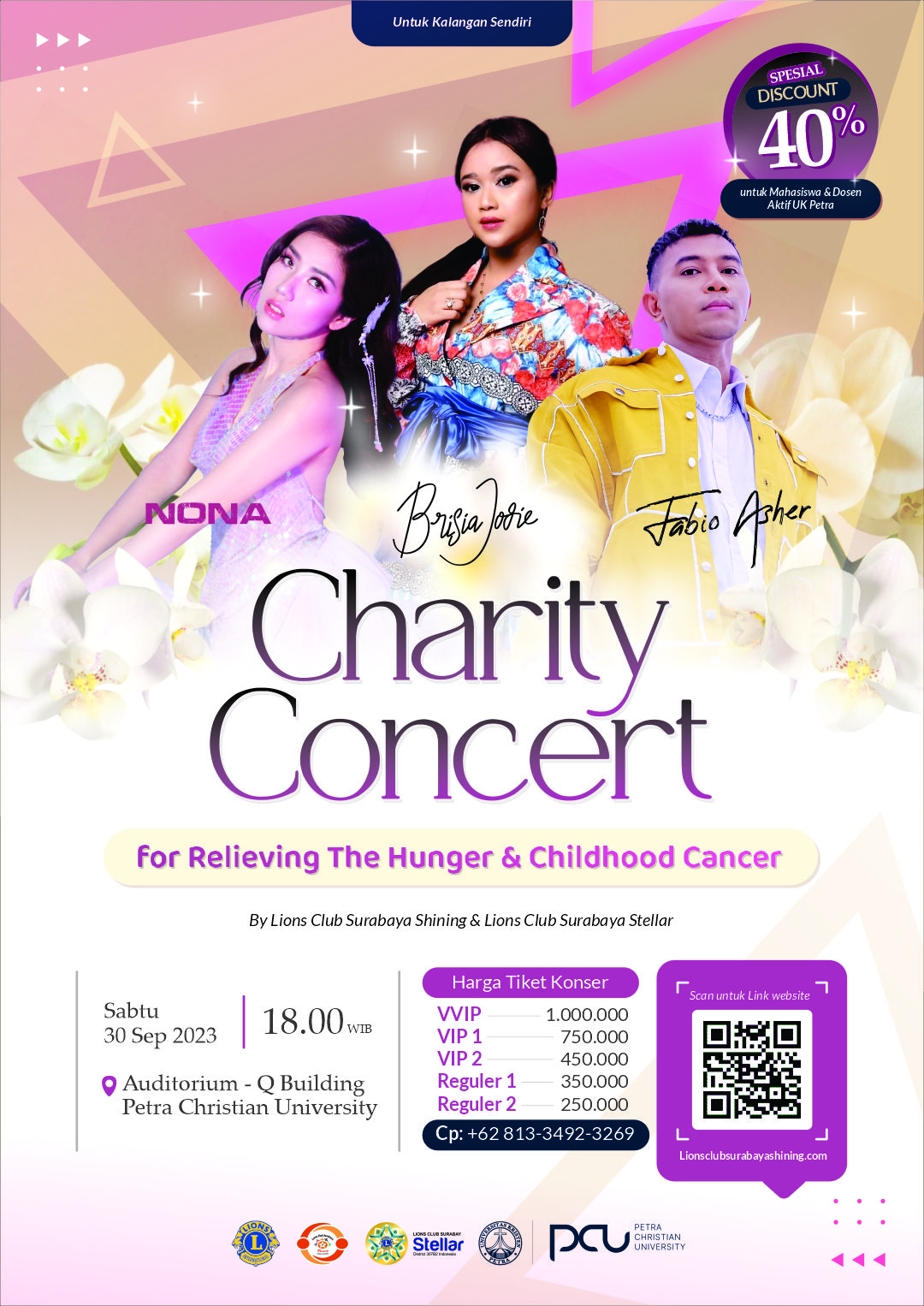 UK Petra berkolaborasi dengan Lions Club (LC) Surabaya Shining dan LC Surabaya Stellar mengadakan konser amal dengan target dapat mengadakan bakti sosial bagi 5.000 orang di sekitar UK Petra serta mendirikan rumah singgah bagi anak pengidap kanker. Konser ini diselenggarakan pada Sabtu, 30 September 2023 bertempat di Auditorium gedung Q.