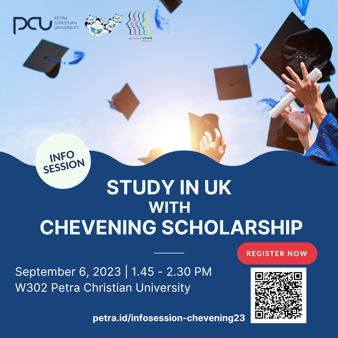 Telah dibuka kesempatan untuk belajar di UK dengan beasiswa dari Chevening Scholarship. Presentasi program dilaksanakan pada 06 September 2023 bertempat di W.302 Universitas Kristen Petra Surabaya